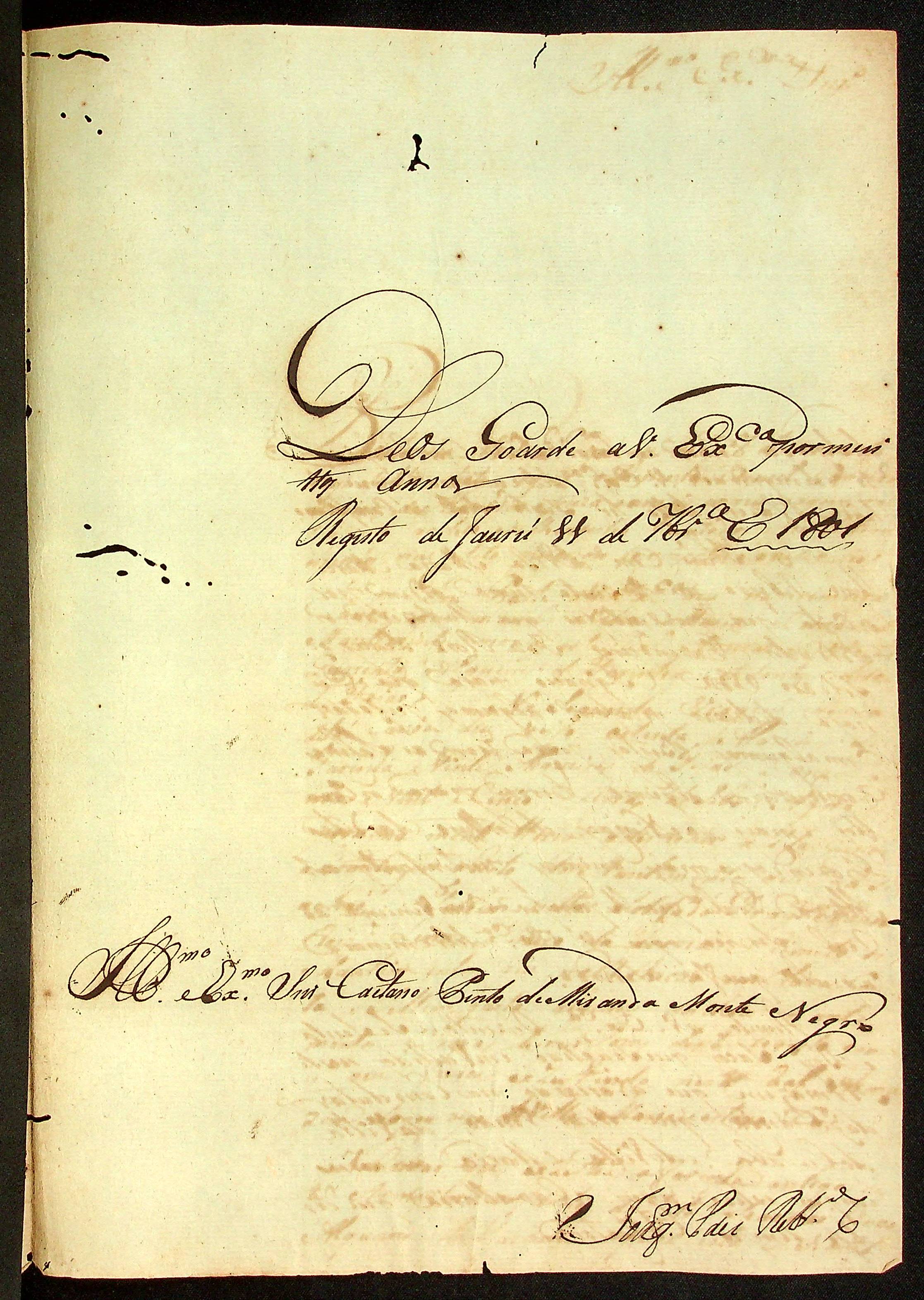 CARTA do [Cabo de Esquadra] Joaquim Paes Ribeiro ao Governador e Capitão-General da Capitania de Mato Grosso Caetano Pinto de Miranda e Montenegro.