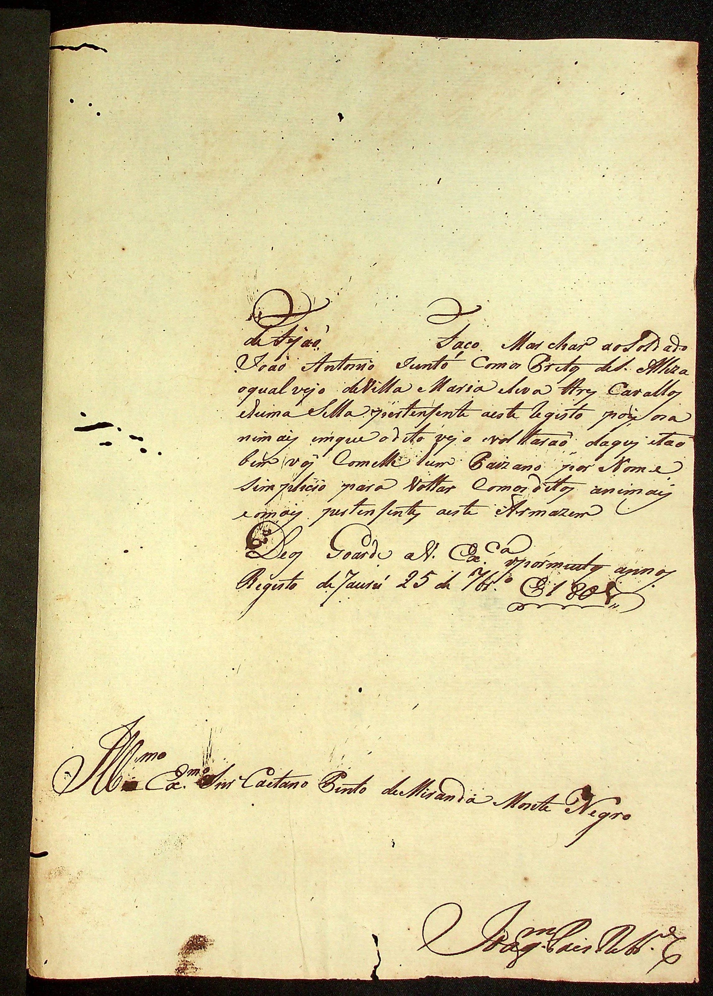 CARTA do [Cabo de Esquadra] Joaquim Paes Ribeiro ao Governador e Capitão-General da Capitania de Mato Grosso Caetano Pinto de Miranda e Montenegro.
