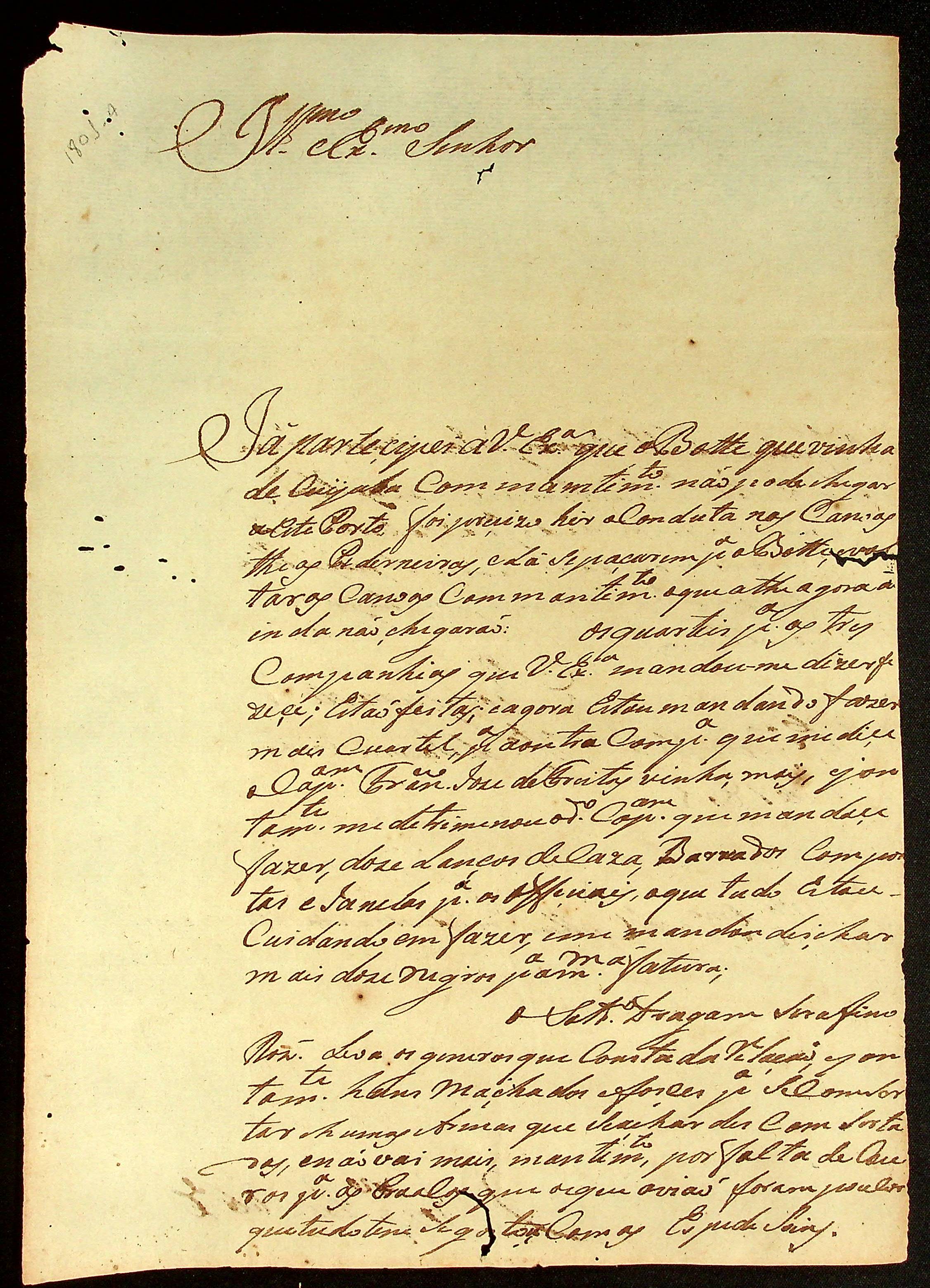 CARTA do [Cabo de Esquadra] Joaquim Paes Ribeiro ao Governador e Capitão-General da Capitania de Mato Grosso Caetano Pinto de Miranda e Montenegro.
