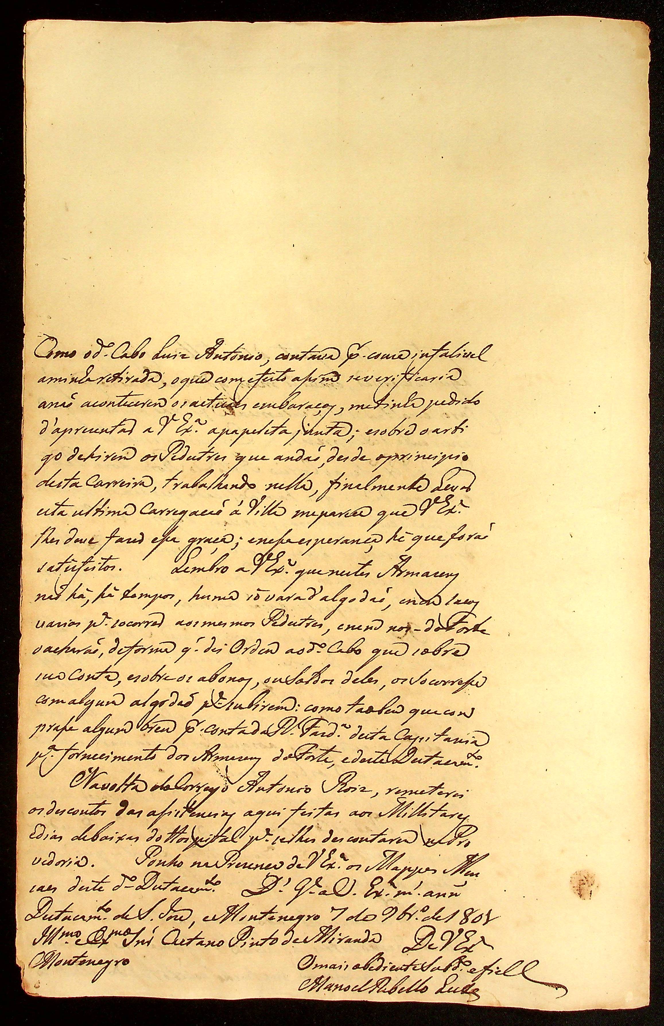 CARTA do [Tenente Comandante] Manoel [Rabelo] Leite ao Governador e Capitão-General da Capitania de Mato Grosso Caetano Pinto de Miranda e Montenegro.