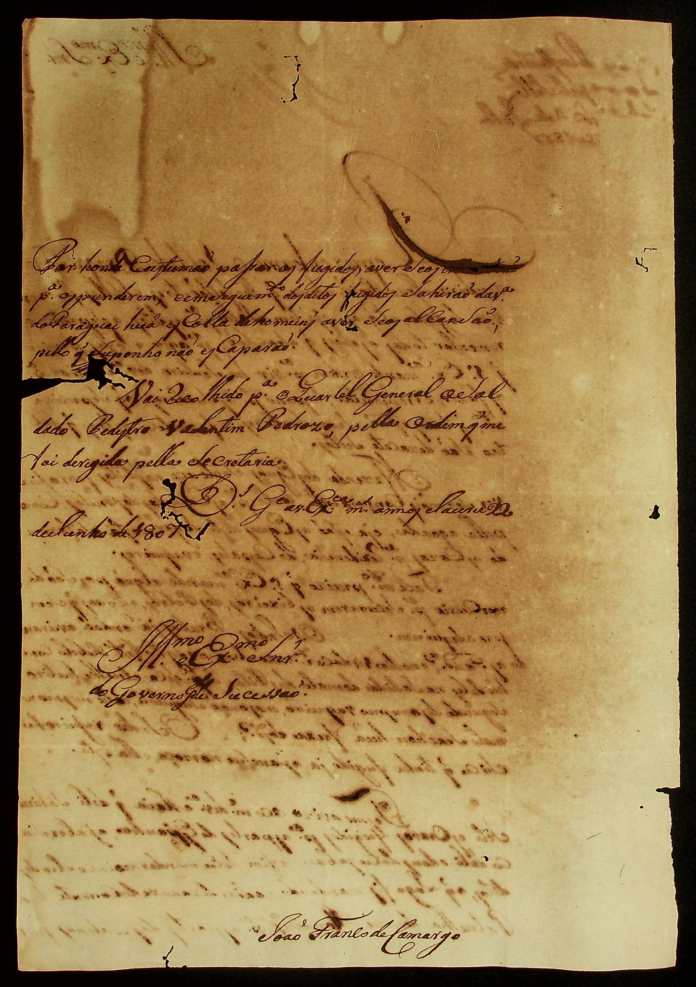 CARTA do [Cabo de Esquadra] João Franco de Camargo à [Terceira Junta Governativa da Capitania de Mato Grosso].