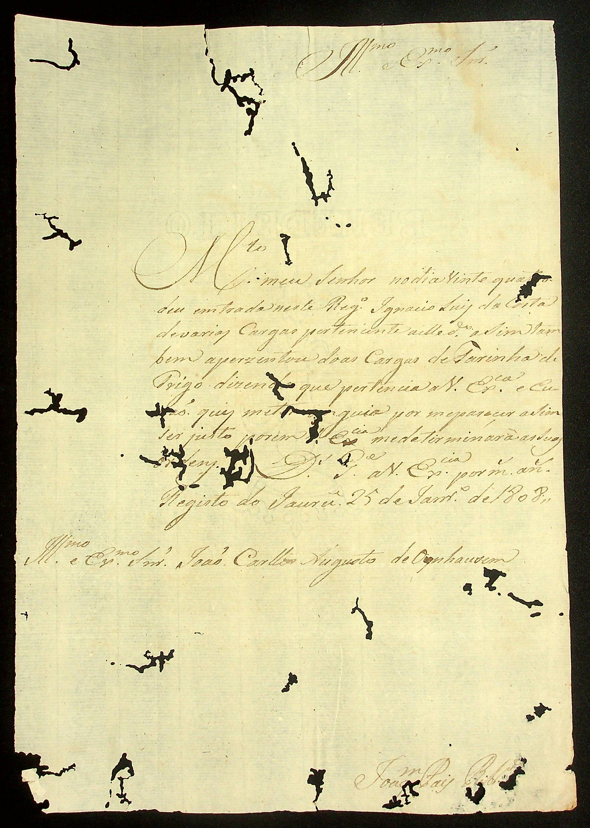 CARTA do [Cabo] Joaquim Paes Ribeiro ao Governador e Capitão-General da Capitania de Mato Grosso João Carlos Augusto d’Oeynhausen e Gravenberg.