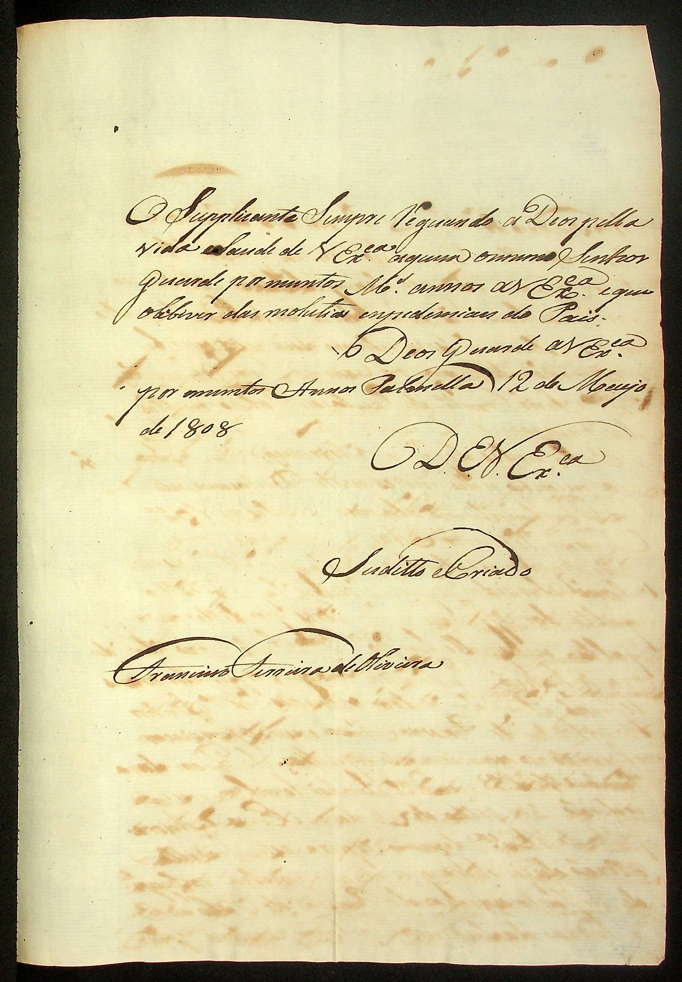 CARTA de Francisco Ferreira de Oliveira ao [Governador e Capitão-General da Capitania de Mato Grosso João Carlos Augusto d’Oeynhausen e Gravenberg].