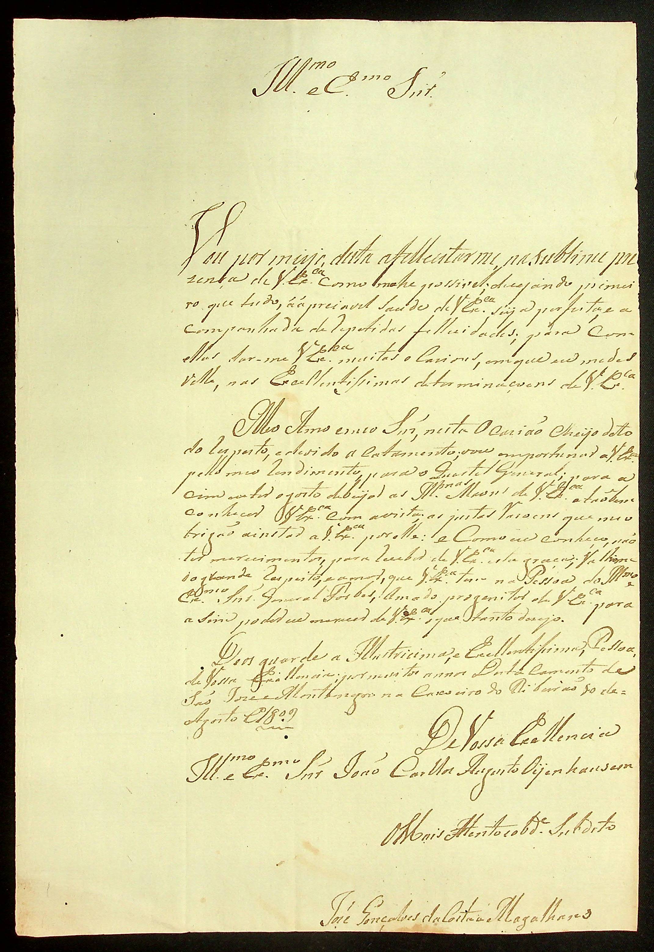 CARTA de José Gonçalves da Costa e Magalhães ao Governador e Capitão-General da Capitania de Mato Grosso João Carlos Augusto d’Oeynhausen e Gravenberg.