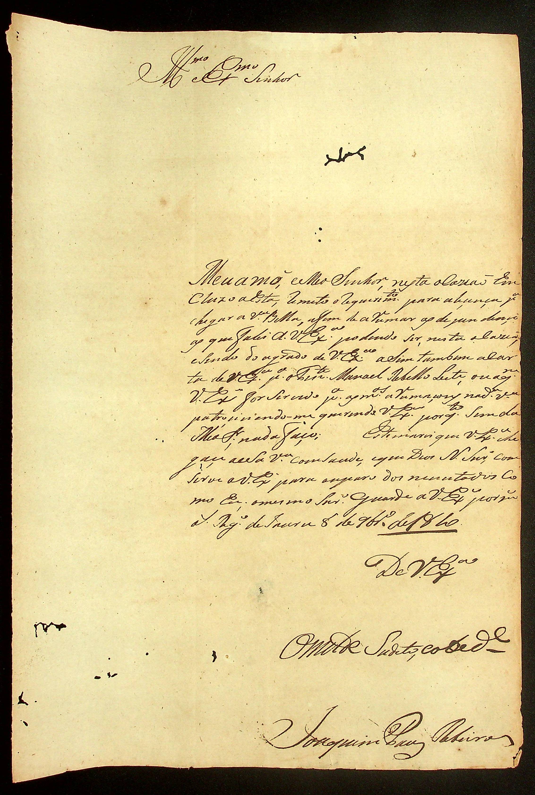 CARTA do [Cabo] Joaquim Paes Ribeiro ao [Governador e Capitão-General da Capitania de Mato Grosso João Carlos Augusto d’Oeynhausen e Gravenberg].