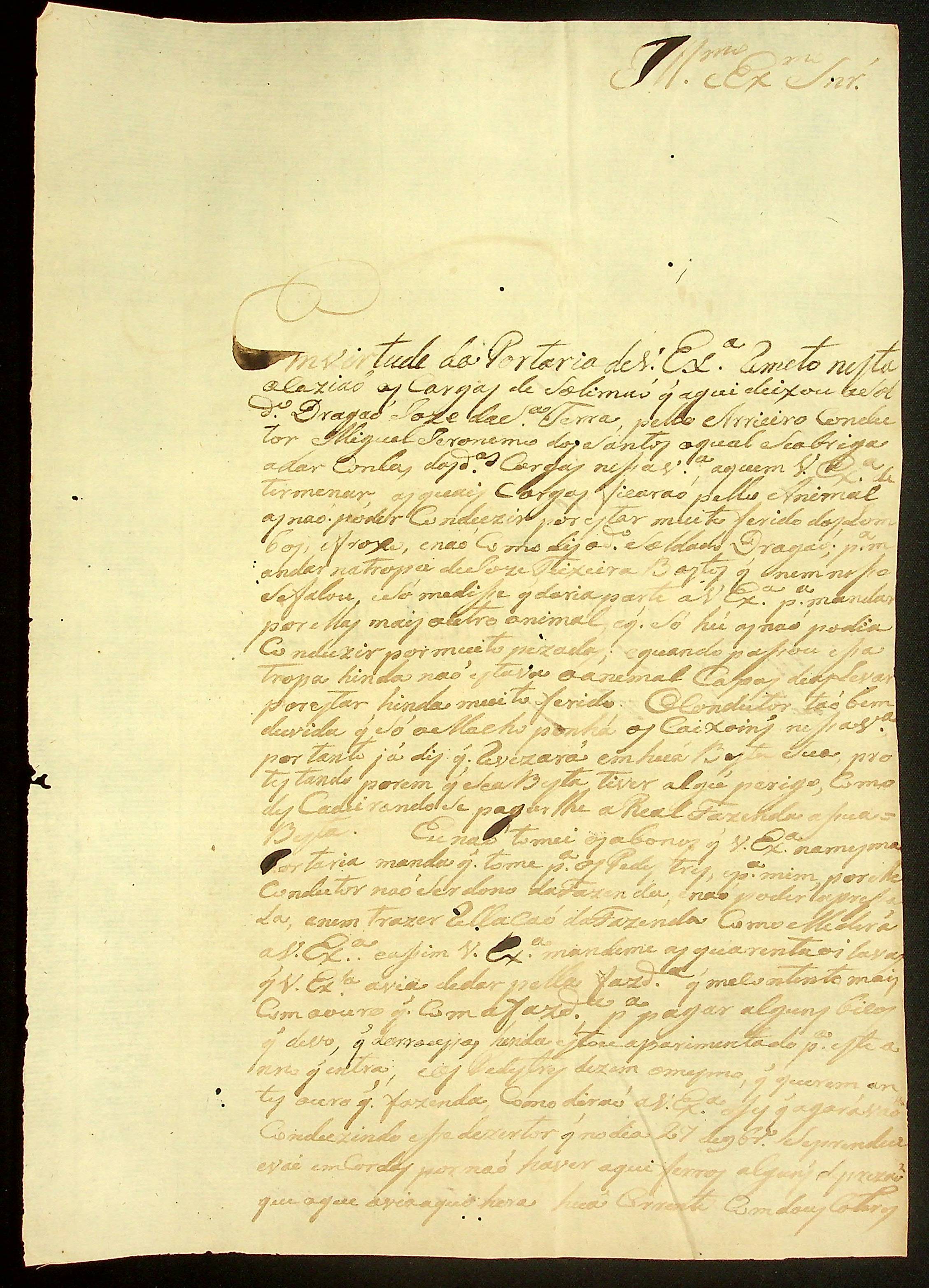 CARTA de João Franco de Camargo ao Governador e Capitão-General da Capitania de Mato Grosso João Carlos Augusto d’Oeynhausen e Gravenberg.