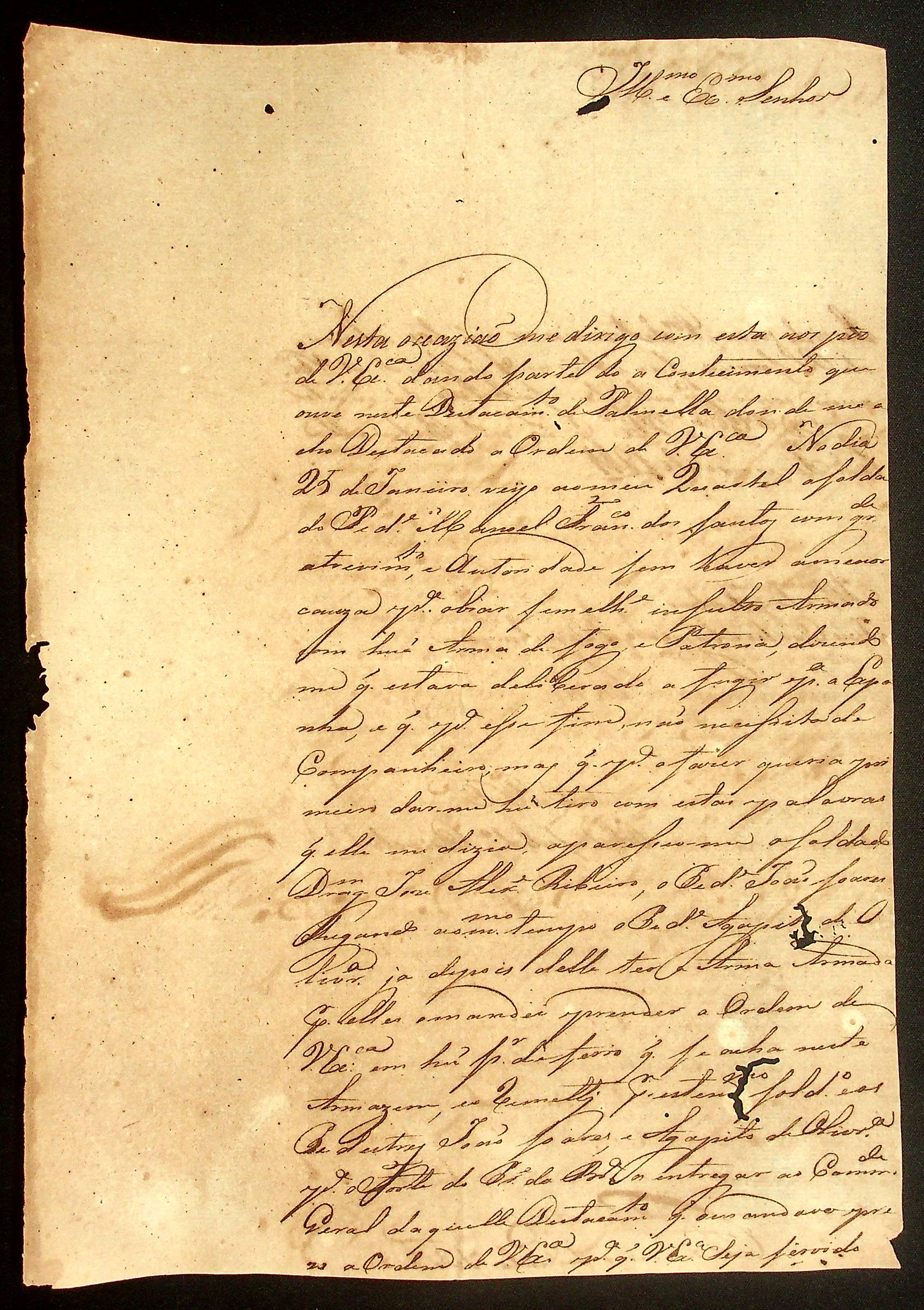 CARTA do Capitão Francisco de Paula de Toledo ao Governador e Capitão-General da Capitania de Mato Grosso João Carlos Augusto d’Oeynhausen e Gravenberg.