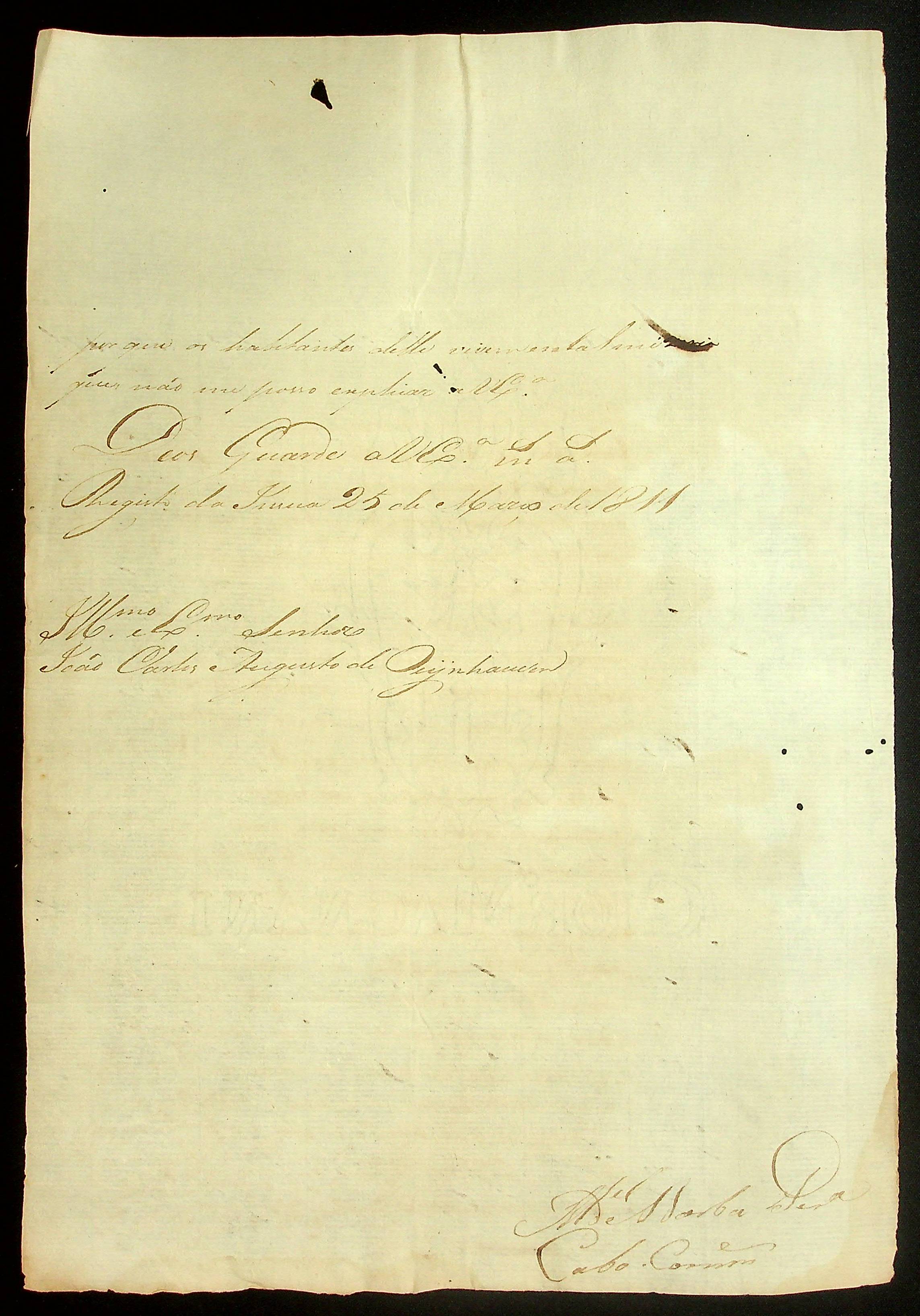 CARTA do Cabo Comandante Manoel Borba Pereira ao Governador e Capitão-General da Capitania de Mato Grosso João Carlos Augusto d’Oeynhausen e Gravenberg.