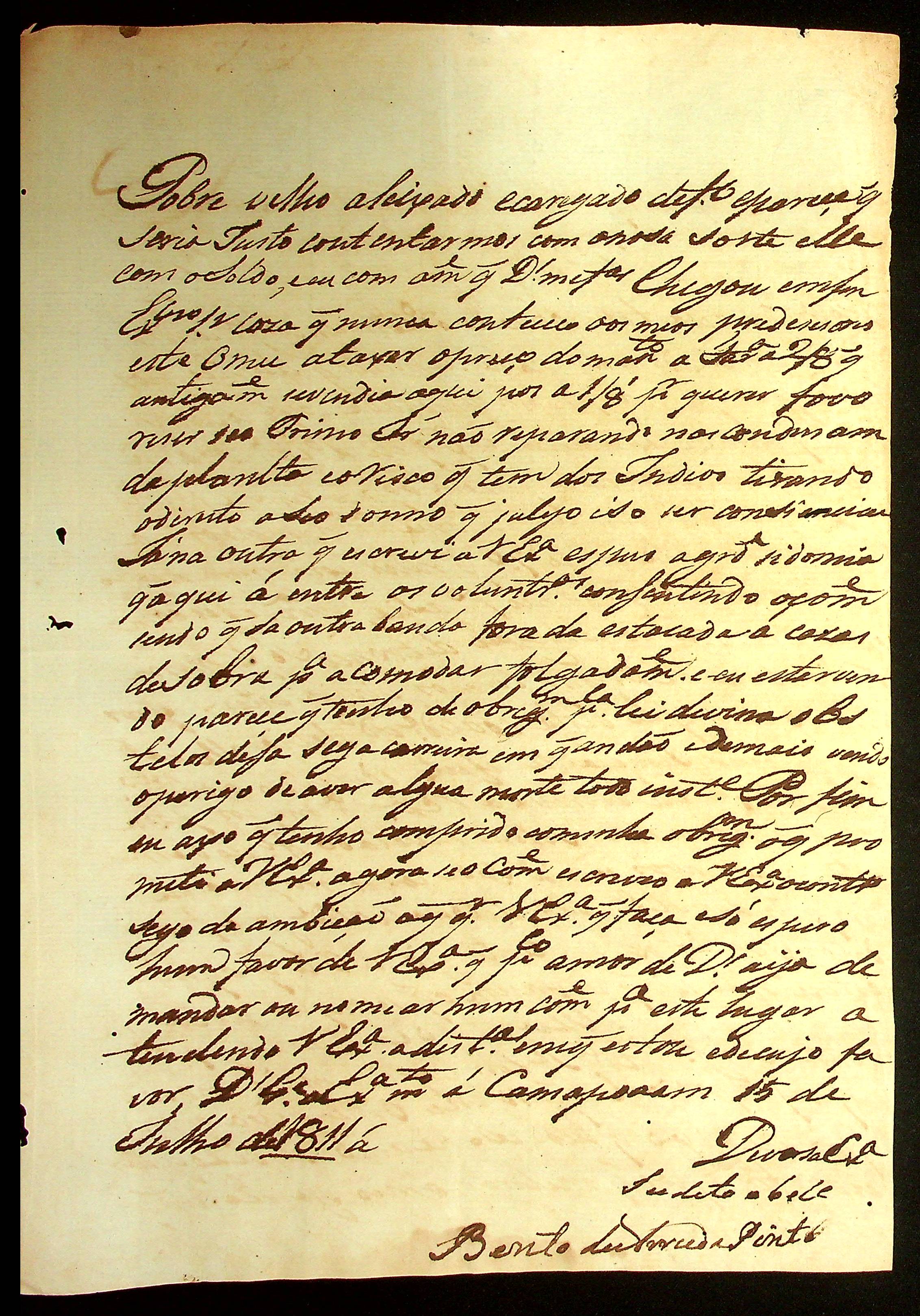 CARTA de Bento de Arruda Pinto ao Governador e Capitão-General da Capitania de Mato Grosso João Carlos Augusto d’Oeynhausen e Gravenberg.