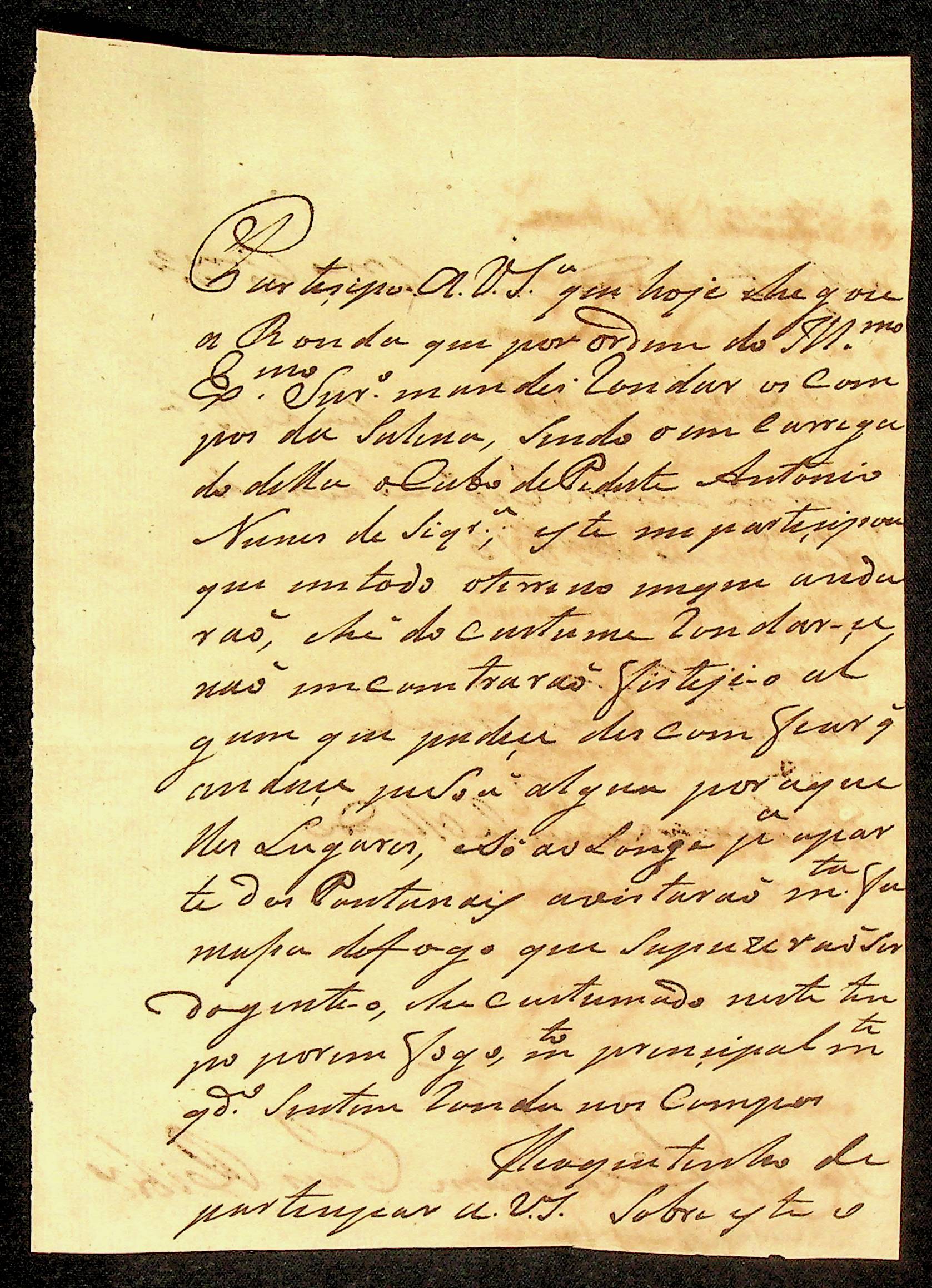 CARTA do [Porta-Estandarte] Joaquim Paes Ribeiro ao Comandante de Vila Bela da Santíssima Trindade Vitoriano Lopes de Macedo.