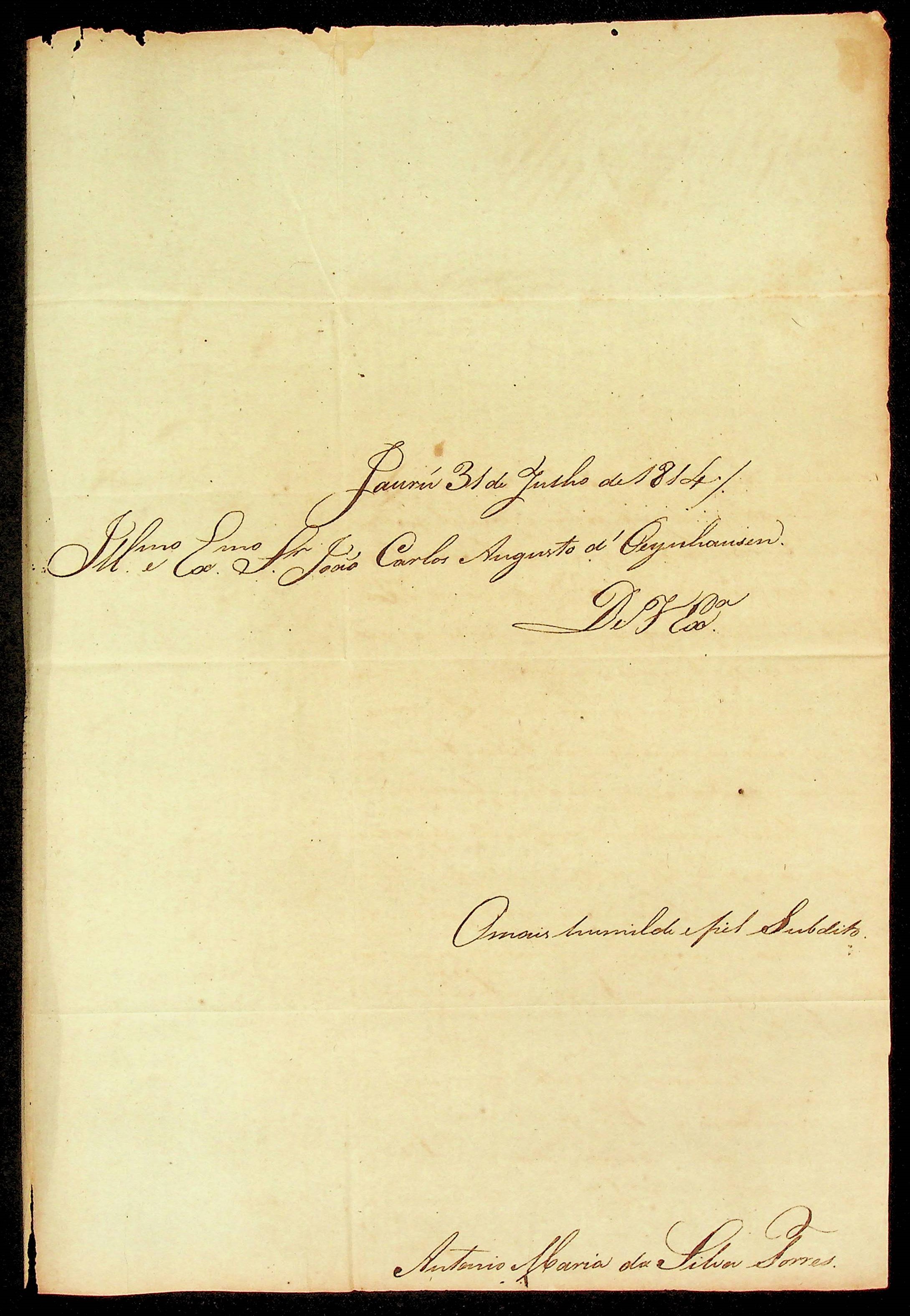 CARTA do [Tenente Dragão] Antônio Maria da Silva Torres ao Governador e Capitão-General da Capitania de Mato Grosso João Carlos Augusto d’Oeynhausen e Gravenberg.