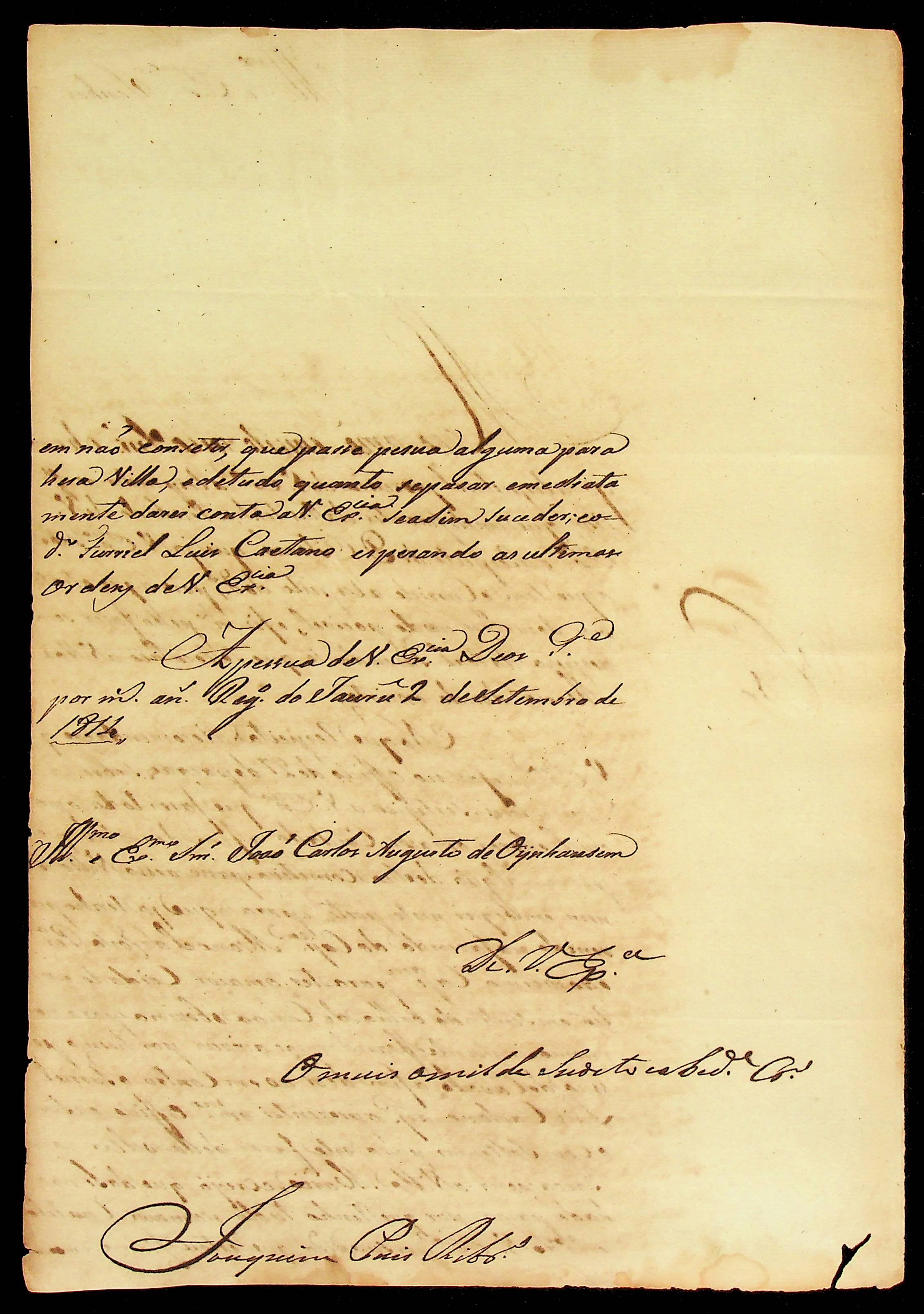 CARTA do [Furriel Comandante] Joaquim Paes Ribeiro ao Governador e Capitão-General da Capitania de Mato Grosso João Carlos Augusto d’Oeynhausen e Gravenberg.