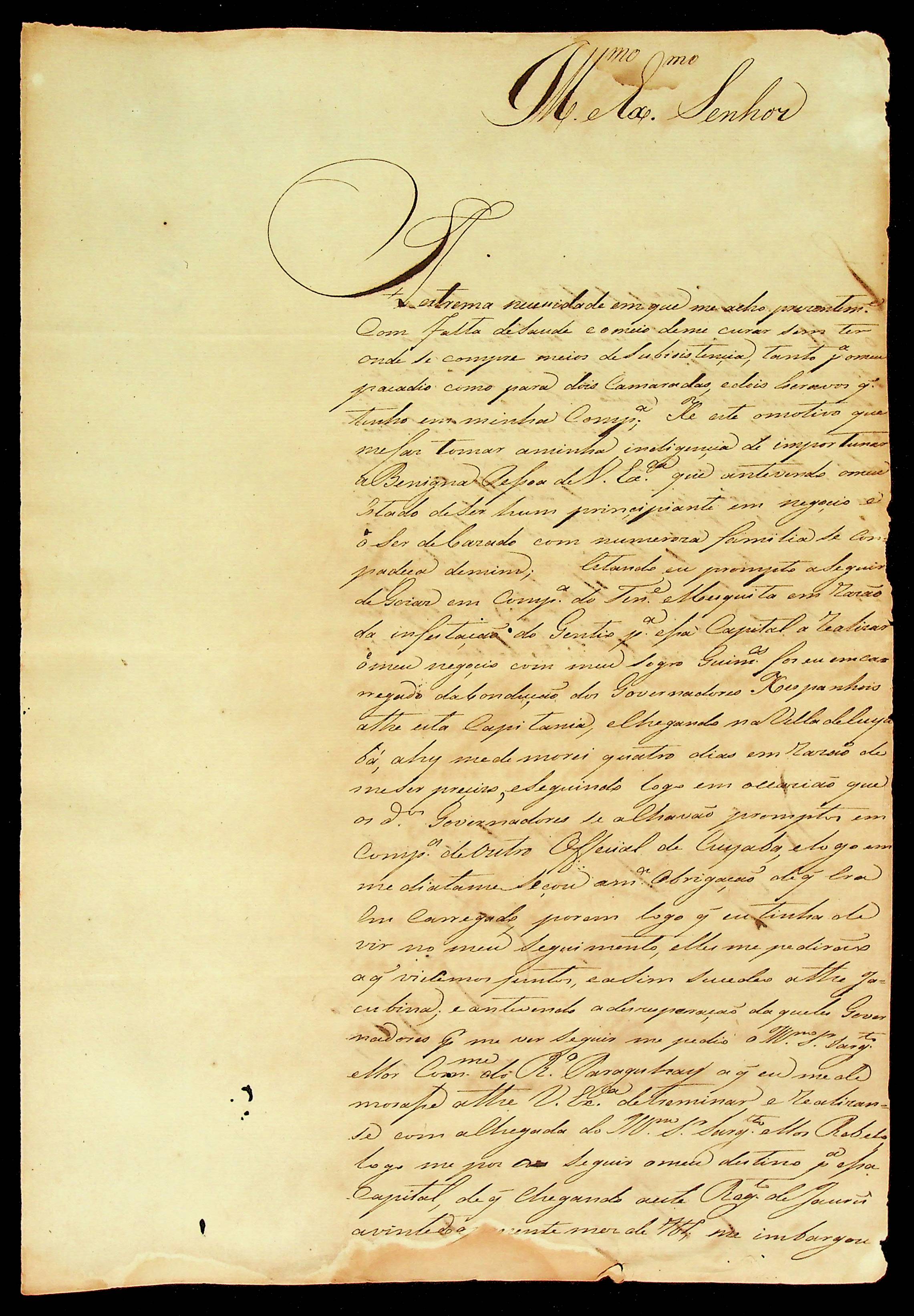 CARTA de Manoel José Corrêa Vianna ao Governador e Capitão-General da Capitania de Mato Grosso João Carlos Augusto d’Oeynhausen e Gravenberg.