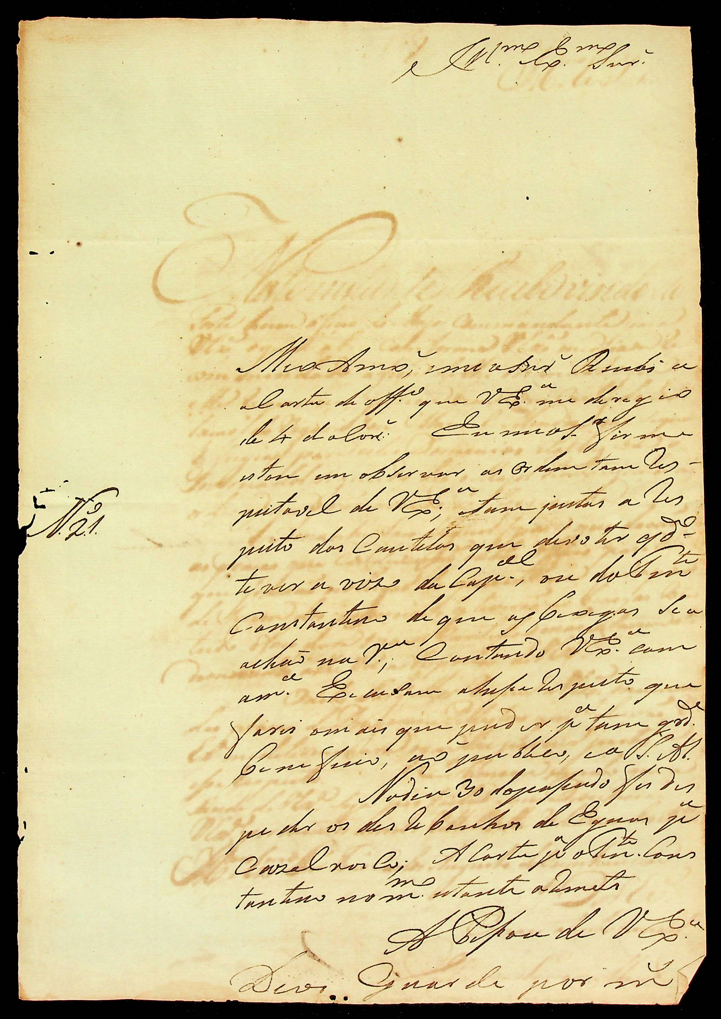 CARTA do [Furriel Comandante] Joaquim Paes Ribeiro ao Governador e Capitão-General da Capitania de Mato Grosso João Carlos Augusto d’Oeynhausen e Gravenberg.