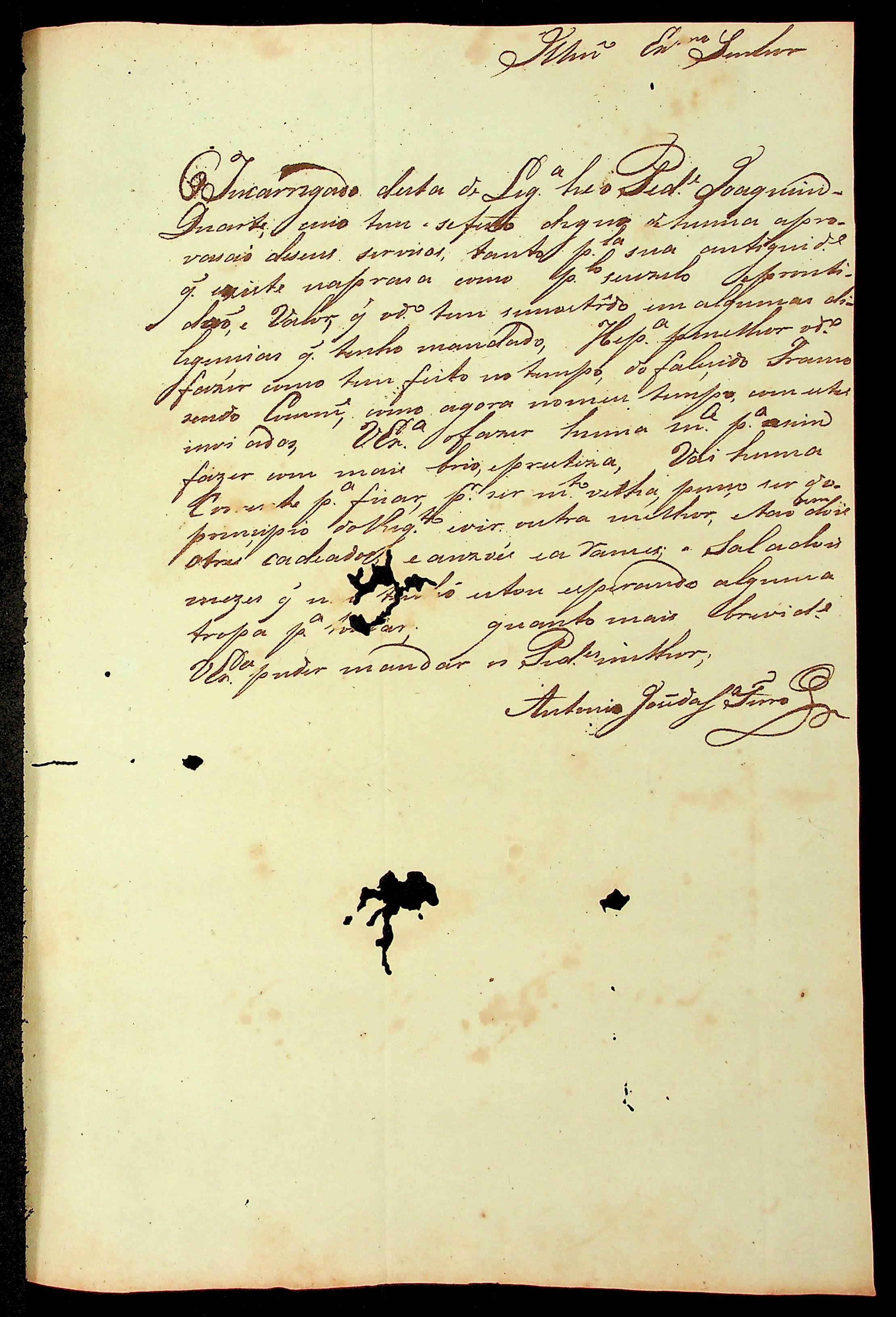 CARTA de Antônio José da Silva Ferro ao Governador e Capitão-General da Capitania de Mato Grosso João Carlos Augusto d’Oeynhausen e Gravenberg.