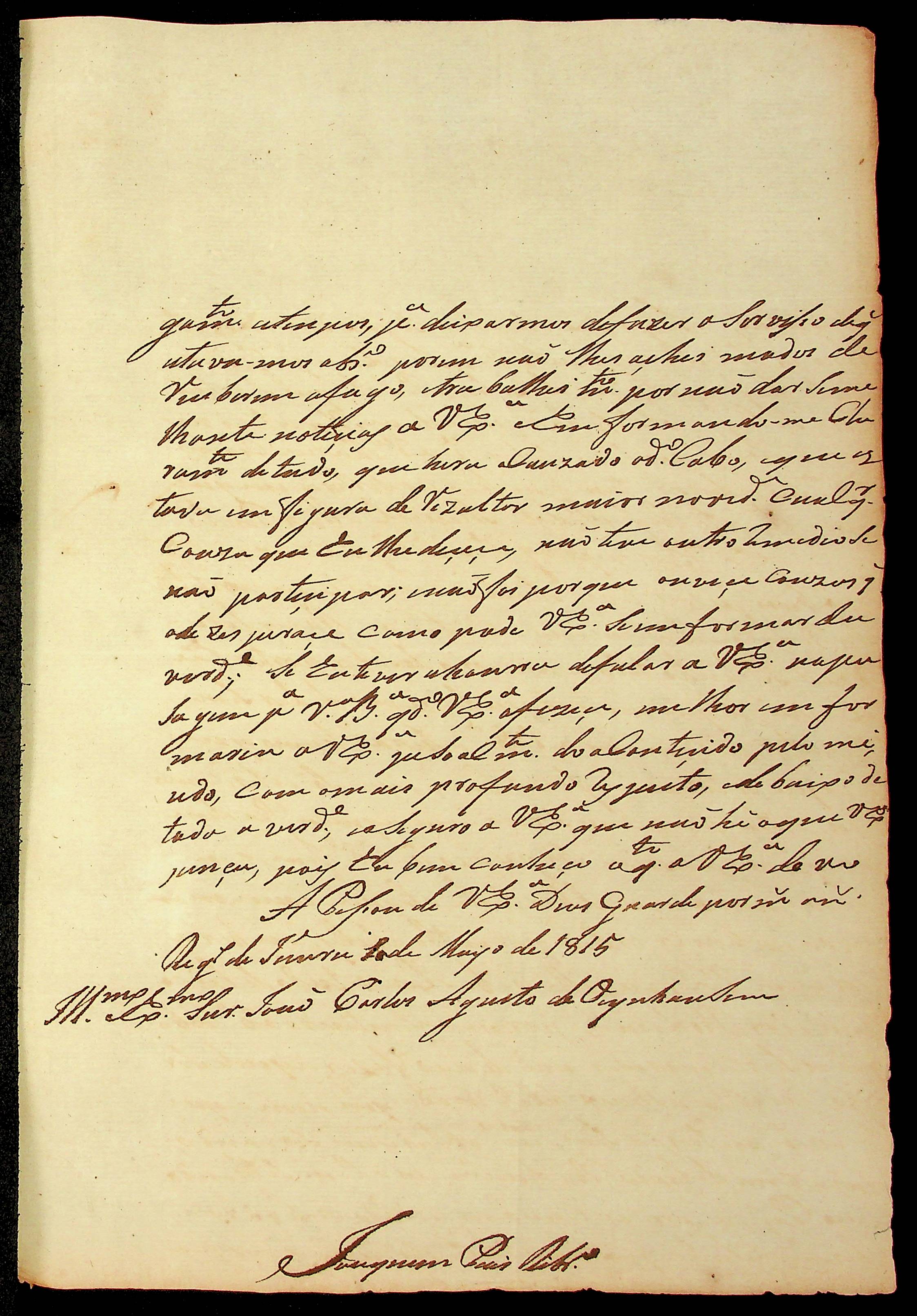 CARTA do [Comandante] Joaquim Paes Ribeiro ao Governador e Capitão-General da Capitania de Mato Grosso João Carlos Augusto d’Oeynhausen e Gravenberg.
