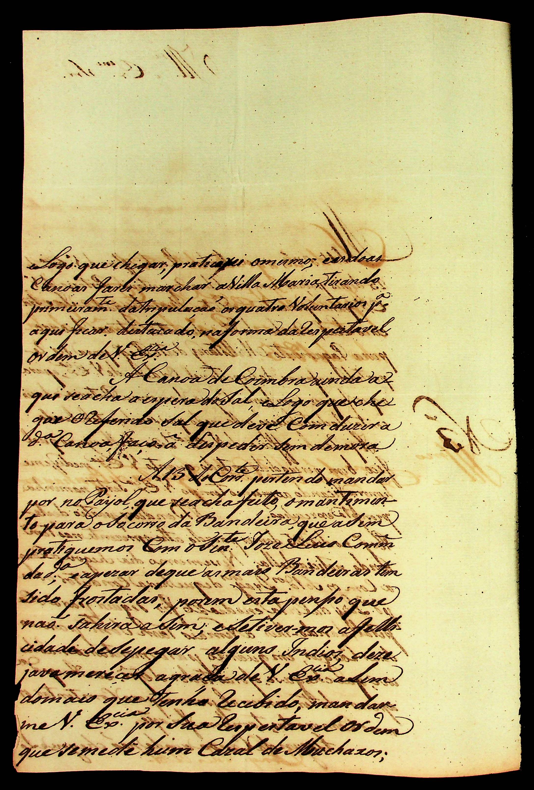 CARTA do [Comandante] Joaquim Paes Ribeiro ao Governador e Capitão-General da Capitania de Mato Grosso João Carlos Augusto d’Oeynhausen e Gravenberg.
