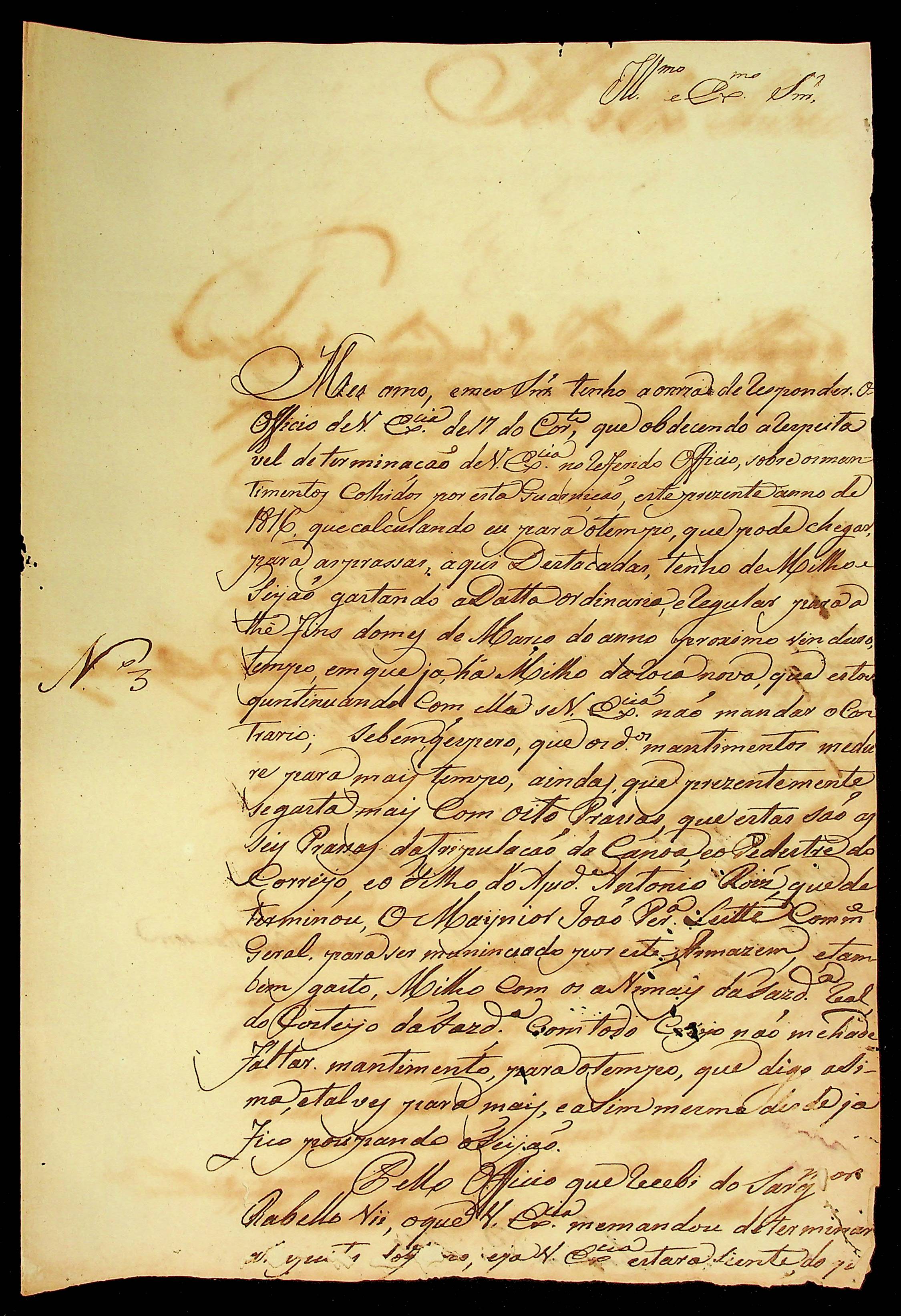 CARTA do [Comandante] Joaquim Paes Ribeiro ao Governador e Capitão-General da Capitania de Mato Grosso João Carlos Augusto d’Oeynhausen e Gravenberg.