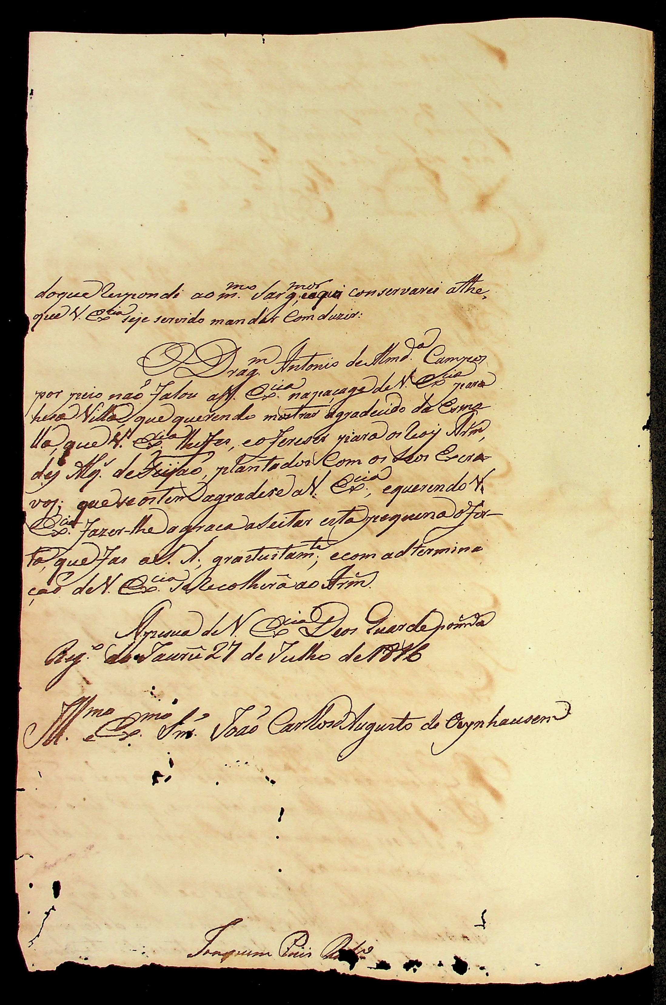 CARTA do [Comandante] Joaquim Paes Ribeiro ao Governador e Capitão-General da Capitania de Mato Grosso João Carlos Augusto d’Oeynhausen e Gravenberg.