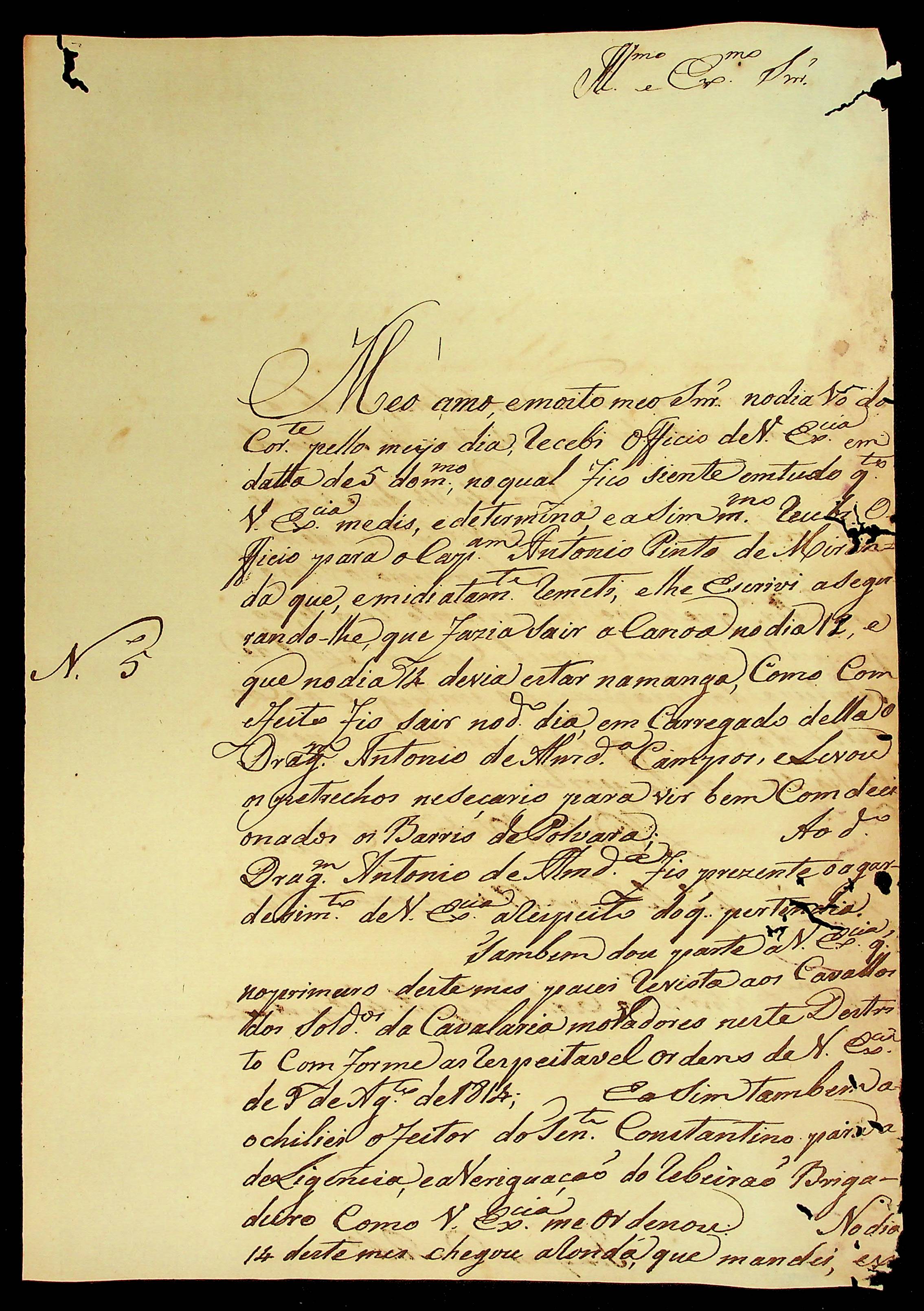 CARTA do [Comandante] Joaquim Paes Ribeiro ao Governador e Capitão-General da Capitania de Mato Grosso João Carlos Augusto d’Oeynhausen e Gravenberg.