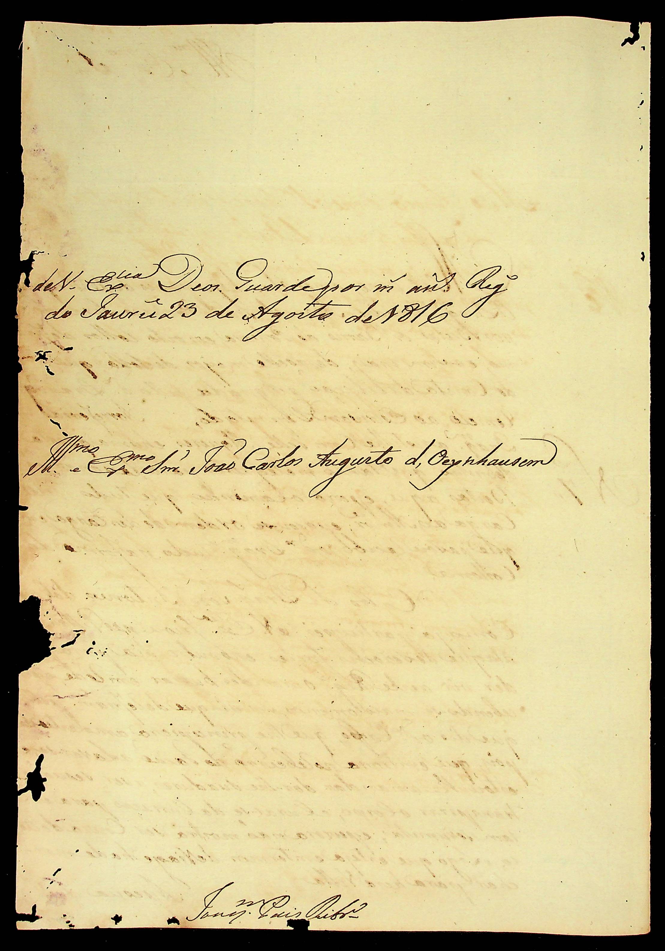 CARTA do [Comandante] Joaquim Paes Ribeiro ao Governador e Capitão-General da Capitania de Mato Grosso João Carlos Augusto d’Oeynhausen e Gravenberg.