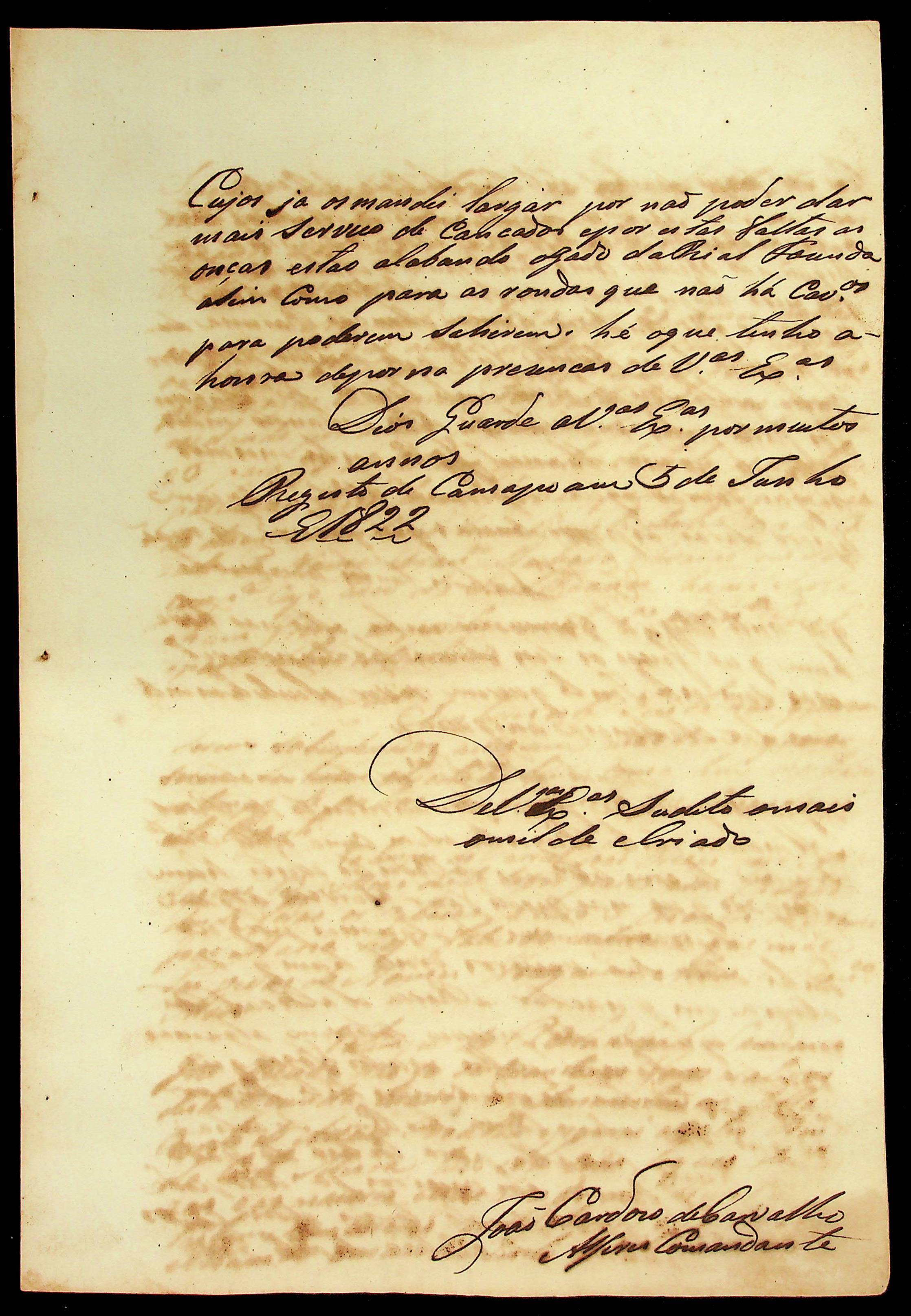 CARTA do Alferes Comandante João Cardozo de Carvalho à Junta Governativa Provisória.