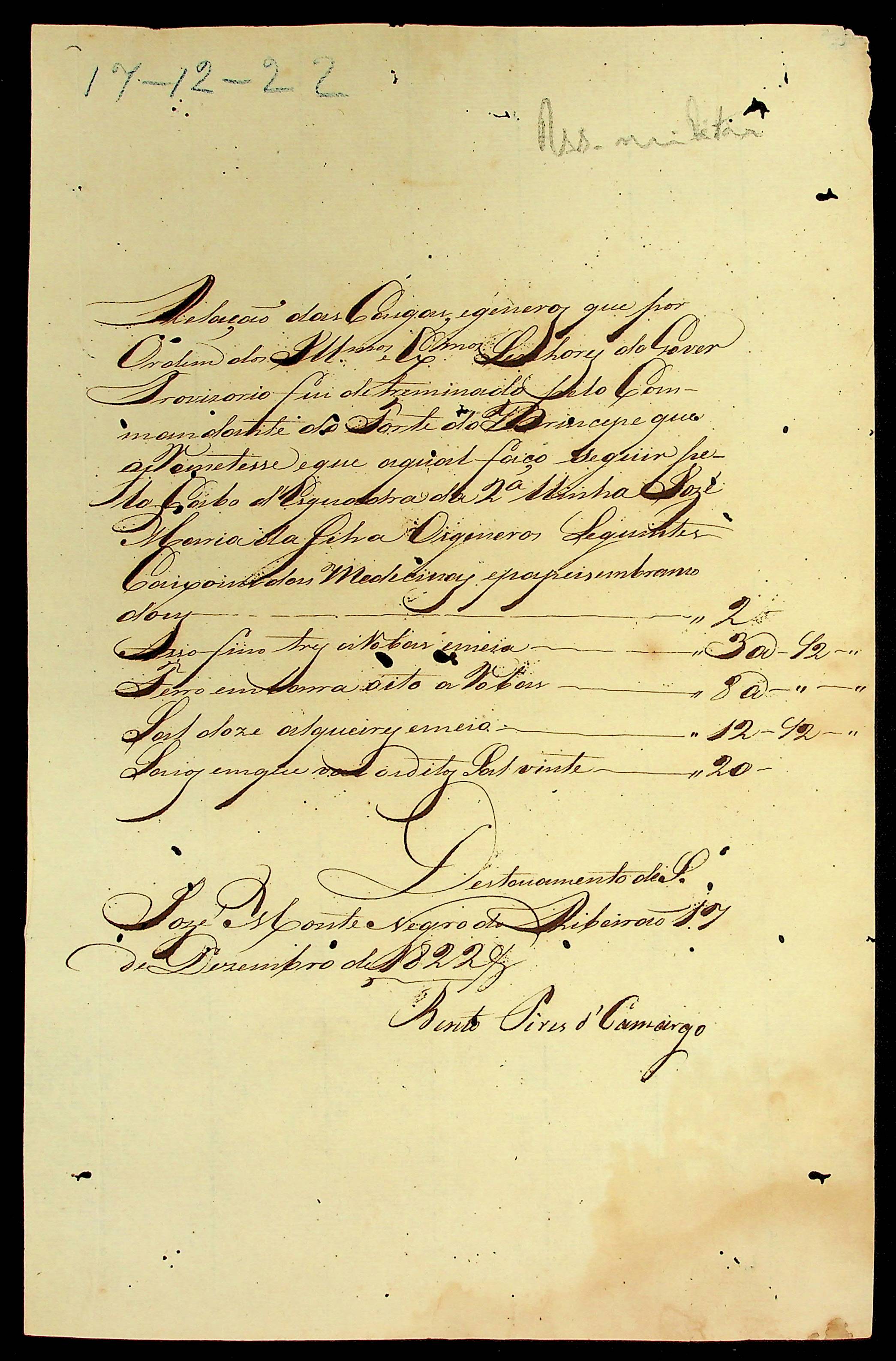 CARTA de Bento Pires de Camargo à Junta Governativa Provisória.