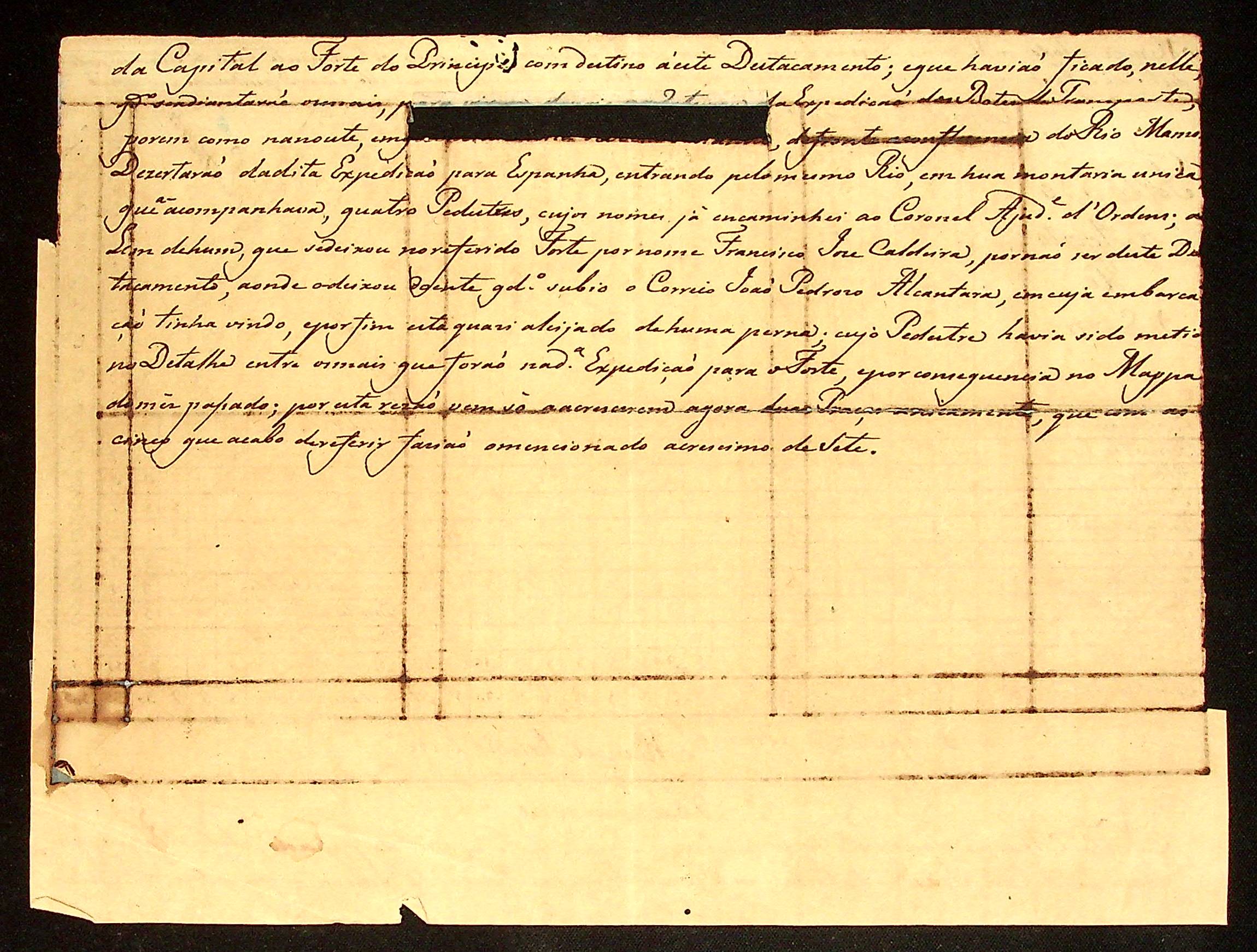 MAPA de todos os militares, paisanos livres, escravos da Real Fazenda pertencentes ao Destacamento de São José Montenegro na Cachoeira do Ribeirão.