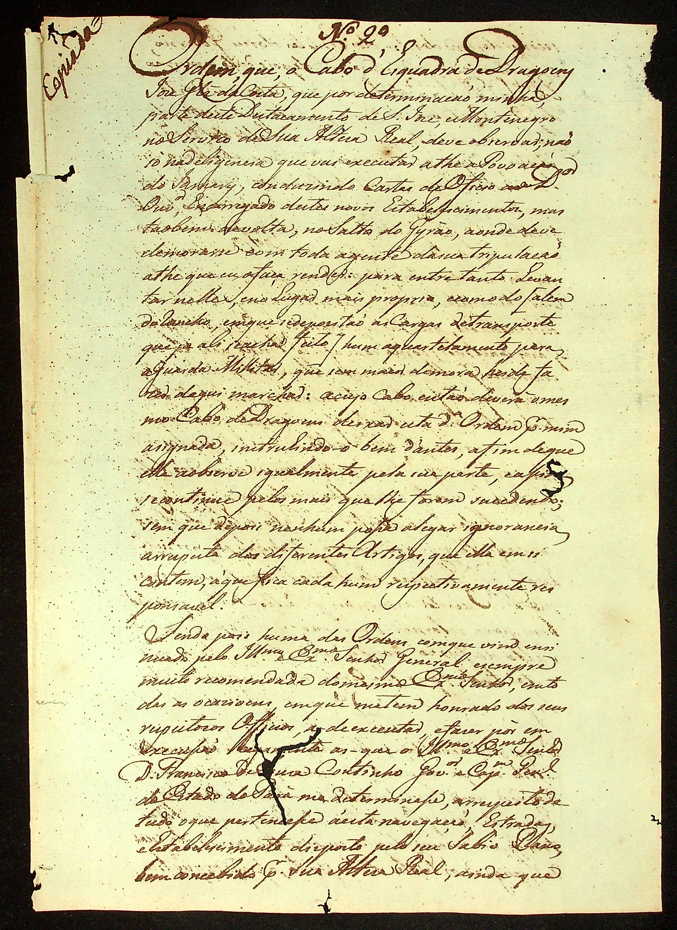 ORDEM (cópia) do [Ajudante e Comandante] Manoel [Rabelo] Leite ao Cabo de Esquadra José Gonçalves da Costa para executar na Povoação de Jamary.