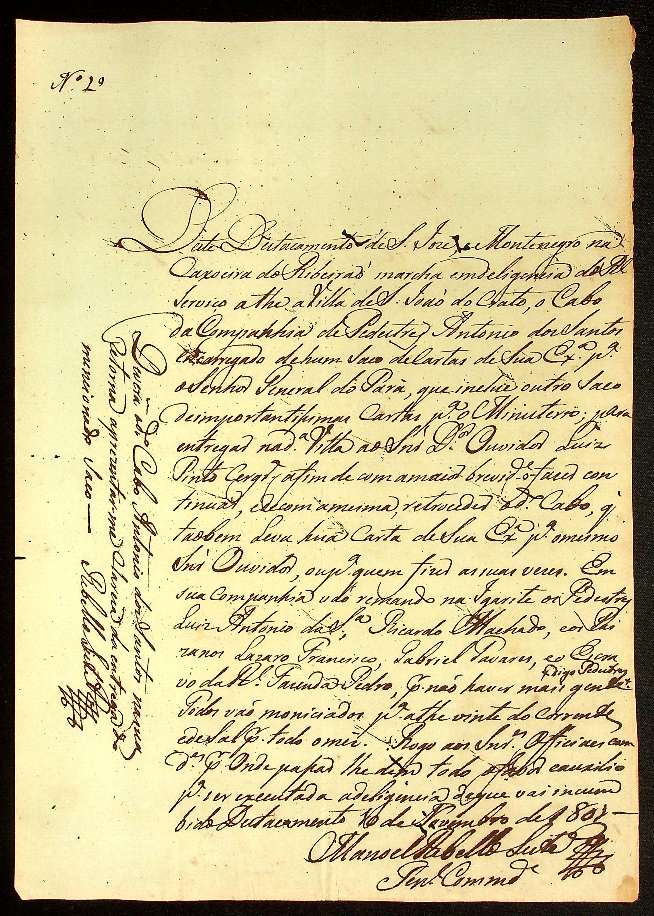 ORDEM do Tenente Comandante Manoel [Rabelo] Leite ao Cabo da Companhia de pedestres Antônio dos Santos.