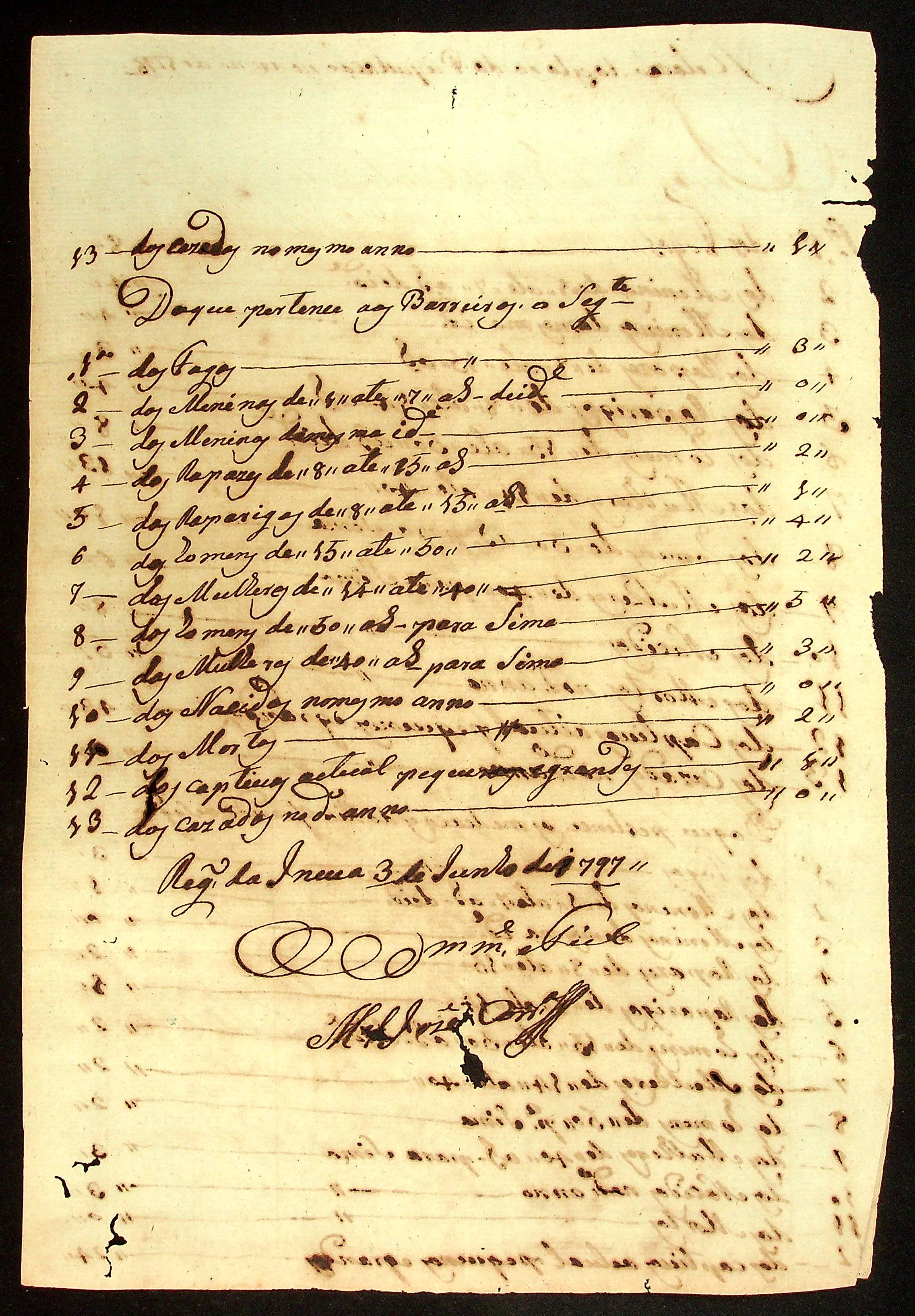 RELAÇÃO da população no Registro da Ínsua no ano de 1796 feita pelo Soldado Manoel José Correa.