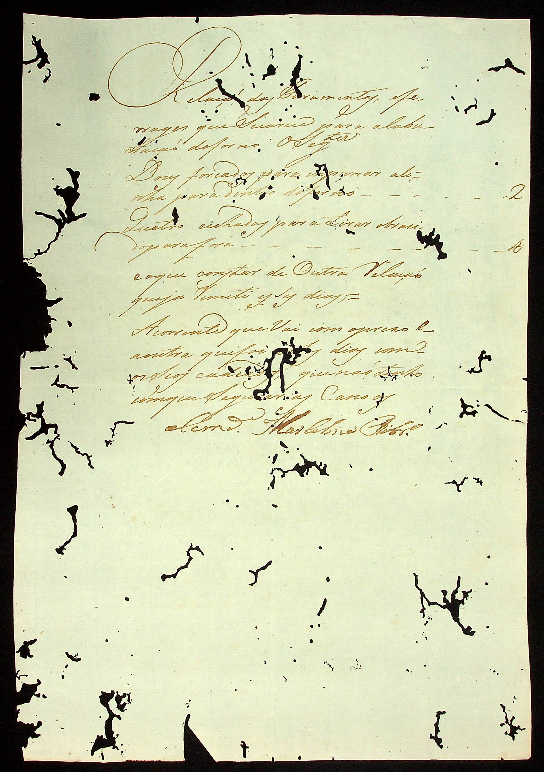 RELAÇÃO das ferramentas e ferragens que servirão para a labutação do forno, pelo [Tenente e Comandante] Marcelino Ribeiro.