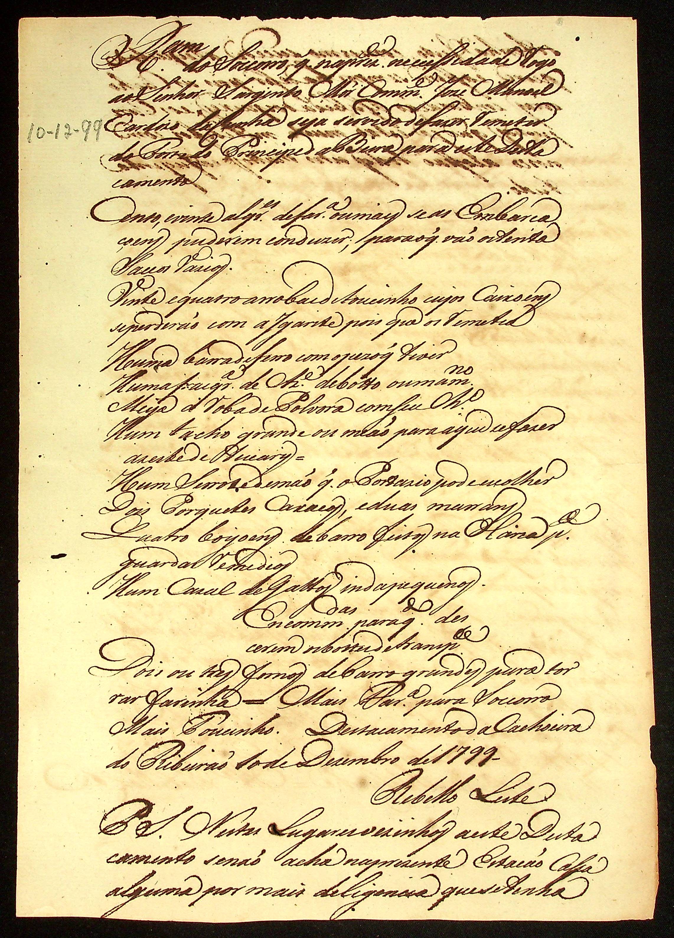 RELAÇÃO do socorro que na presente necessidade rogo ao Sr. Sargento-mor Comandante José Manoel Cardozo da Cunha seja servido de fazer remeter do Forte Príncipe da Beira para este Destacamento, expedida pelo [Ajudante e Comandante] Manoel [Rabelo] Leite.