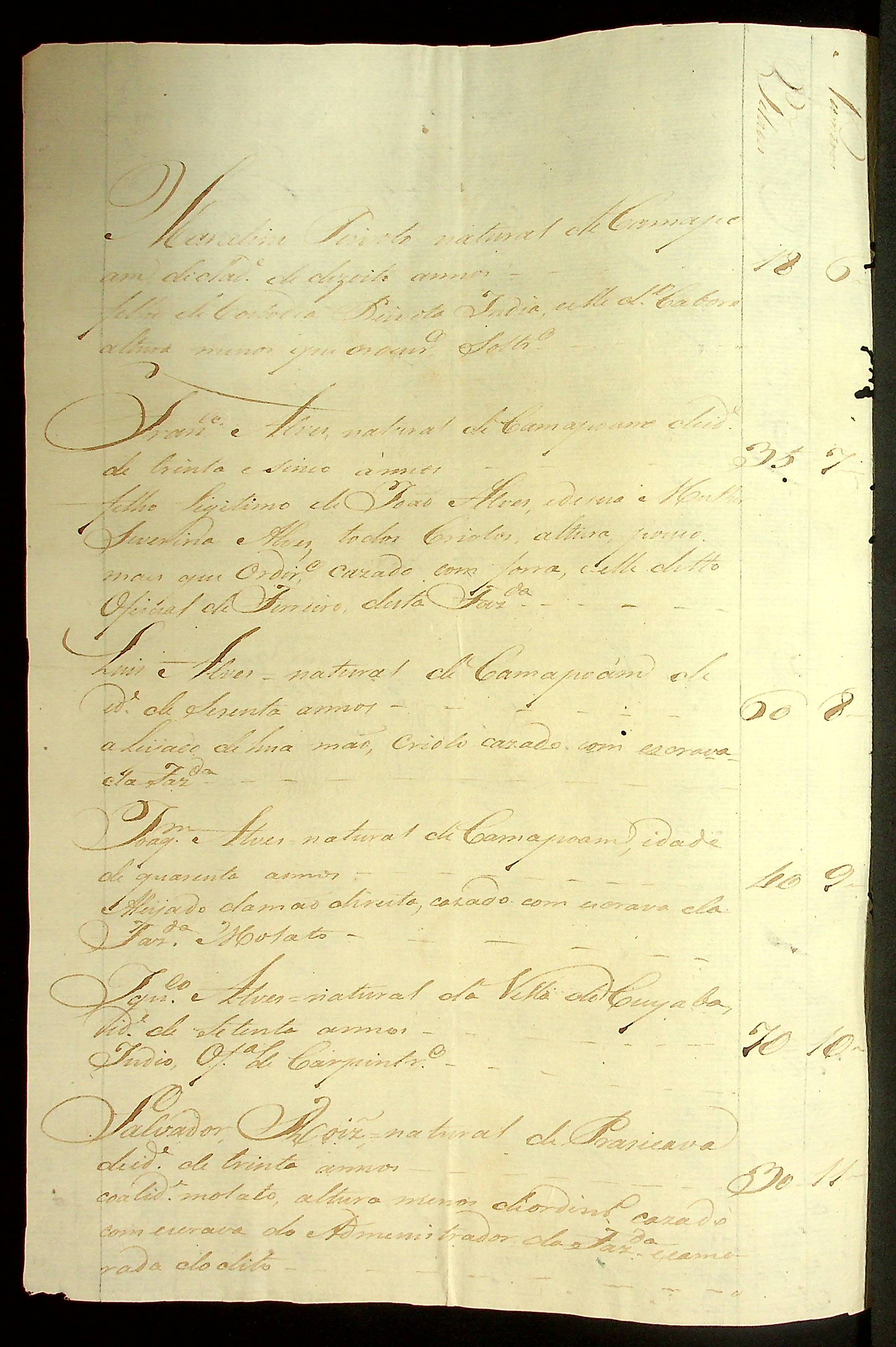 RELAÇÃO das pessoas forras capazes de todo o trabalho que se acham nesta Fazenda de Camapuã agregados, feita pelo Porta-Estandarte e Comandante João Viegas Garces Forte.