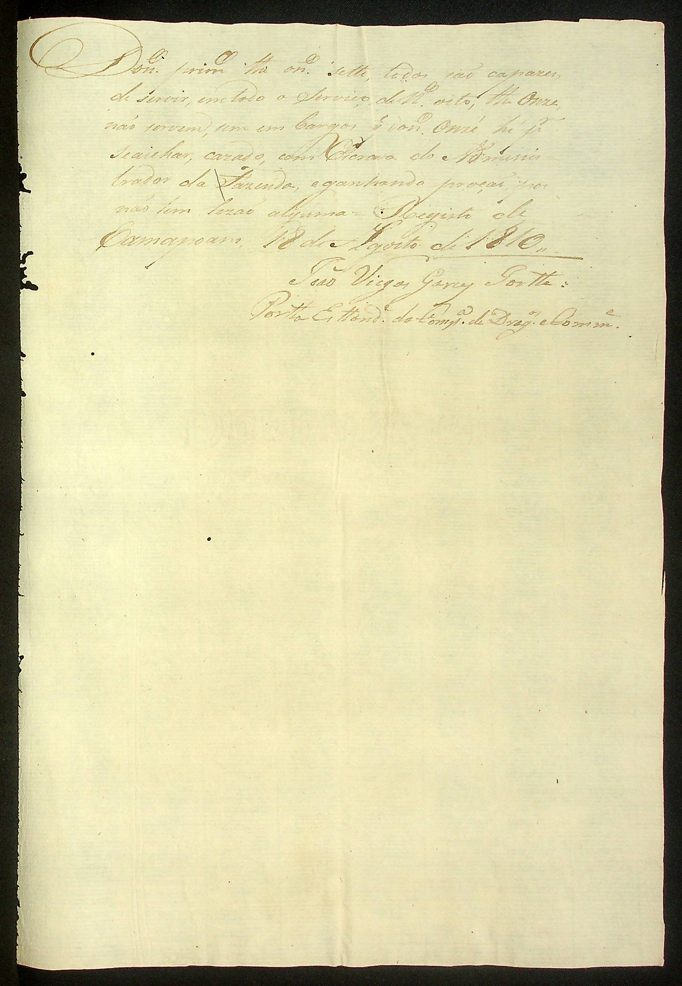 RELAÇÃO das pessoas forras capazes de todo o trabalho que se acham nesta Fazenda de Camapuã agregados, feita pelo Porta-Estandarte e Comandante João Viegas Garces Forte.