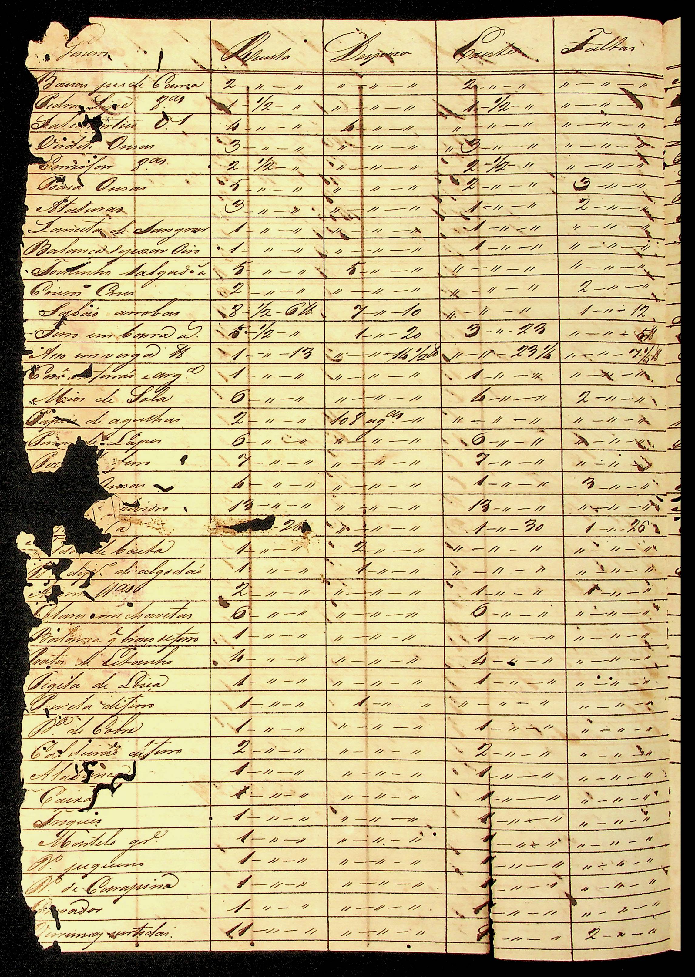 RELAÇÃO de todos os gêneros que entraram, distribuíram-se, existem e faltam no registro de Camapuã assinadopor Valério José Machado.