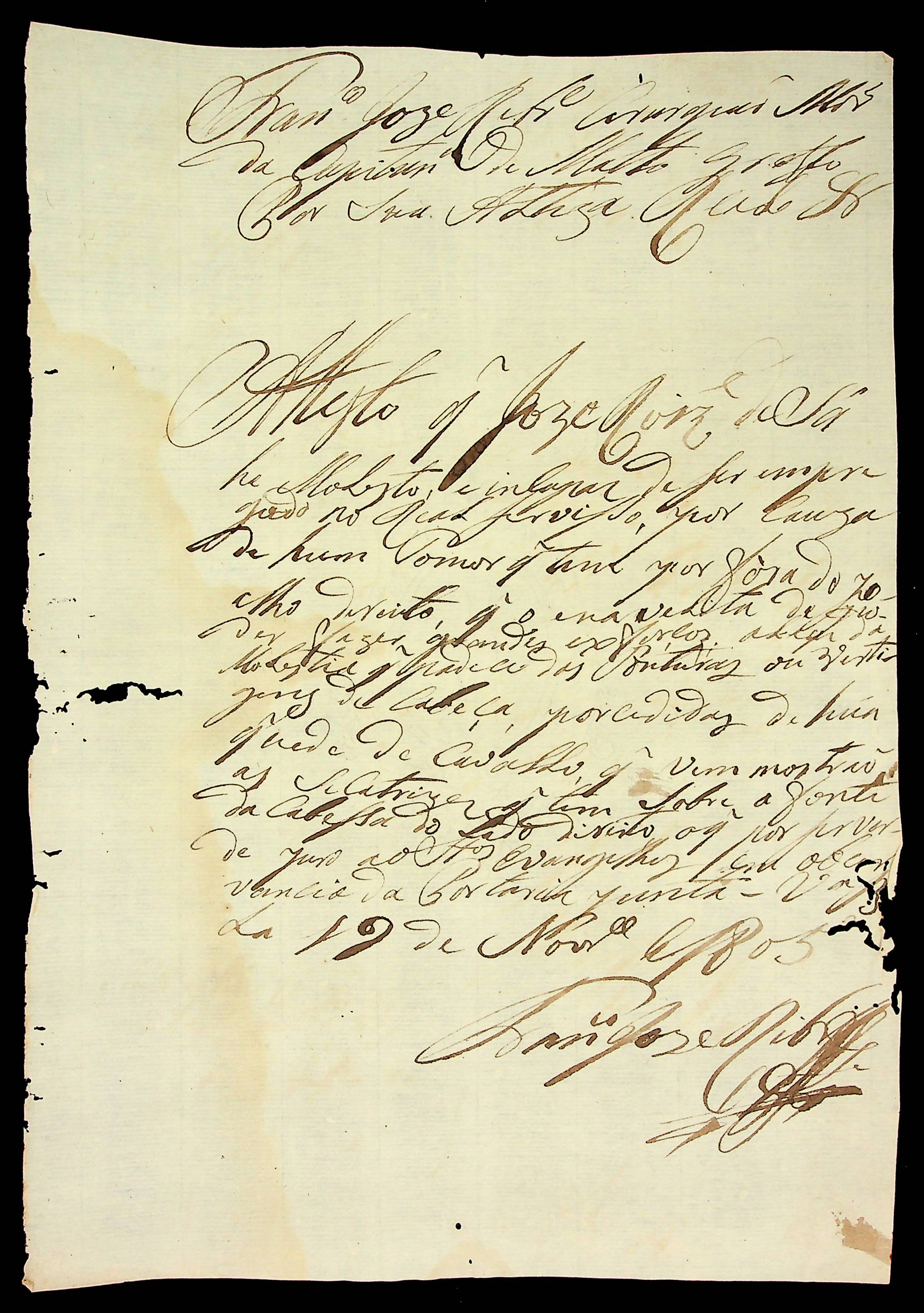ATESTADO expedido pelo Cirurgião-mor Francisco José Ribeiro sobre moléstia de José Rodrigues de Sá.