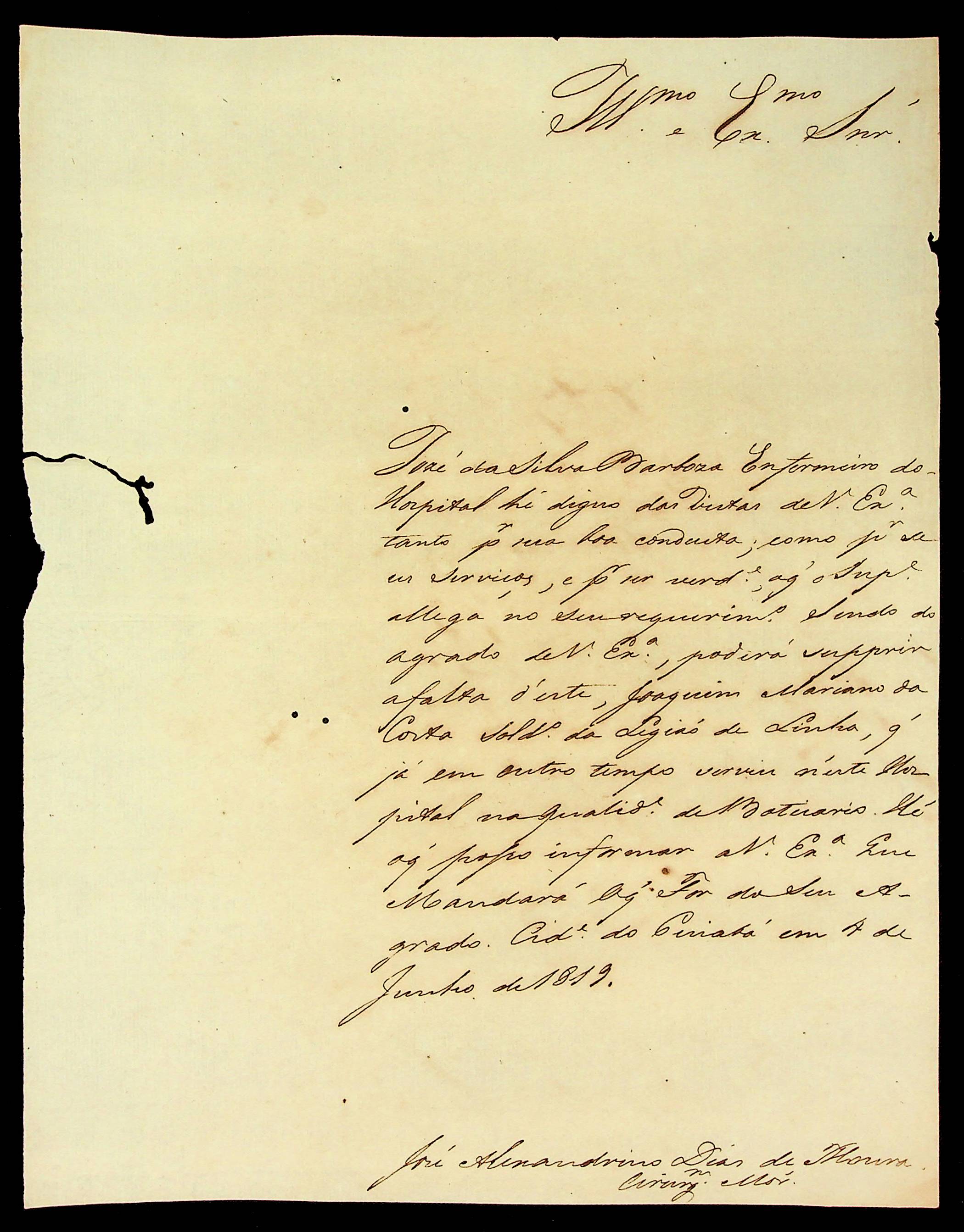 CARTA do Cirurgião-mor José Alexandrino Dias de Moura ao [Governador e Capitão-General da Capitania de Mato Grosso Francisco de Paula Maggessi Tavares de Carvalho].