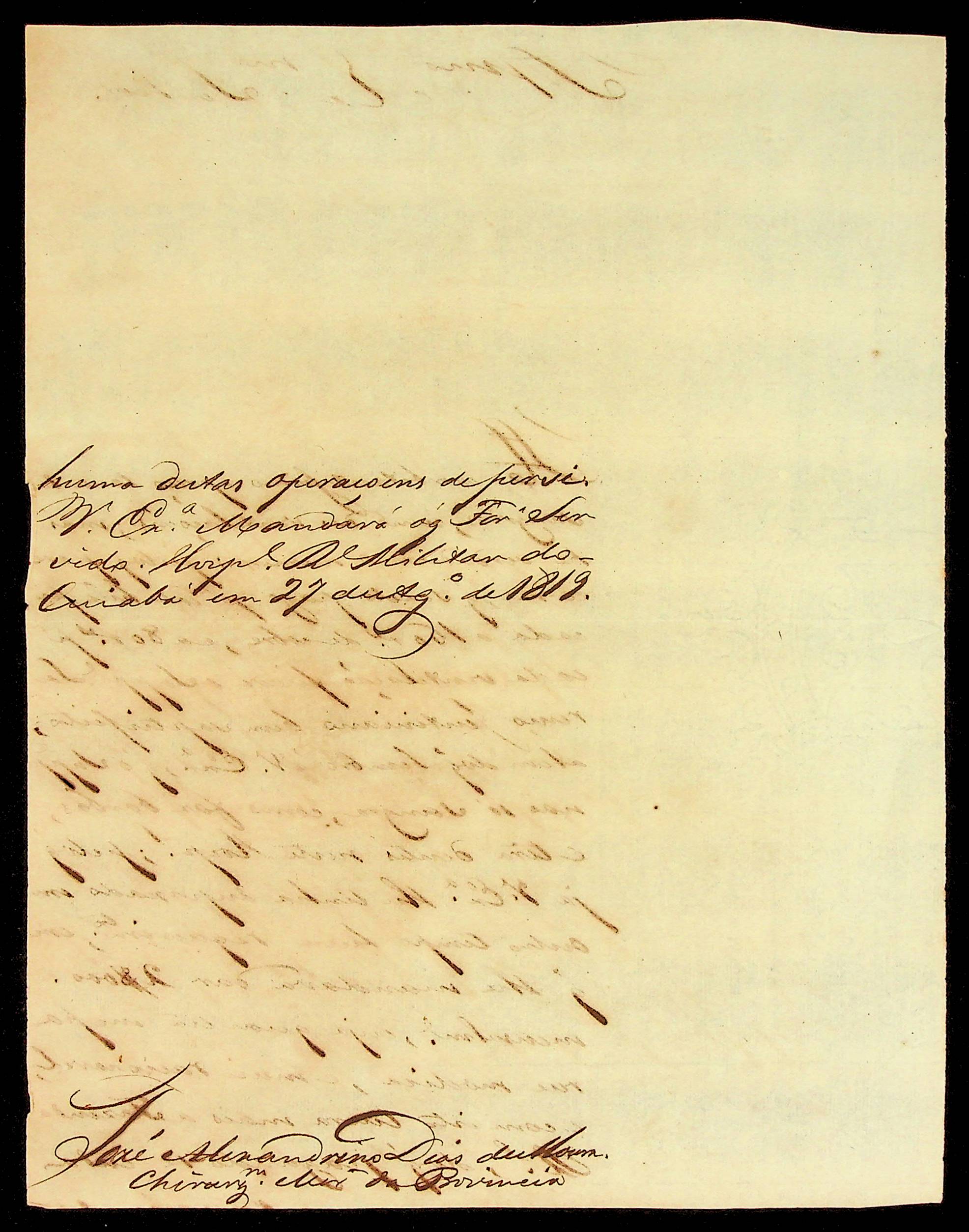 CARTA do Cirurgião-mor José Alexandrino Dias de Moura ao [Governador e Capitão-General da Capitania de Mato Grosso Francisco de Paula Maggessi Tavares de Carvalho].