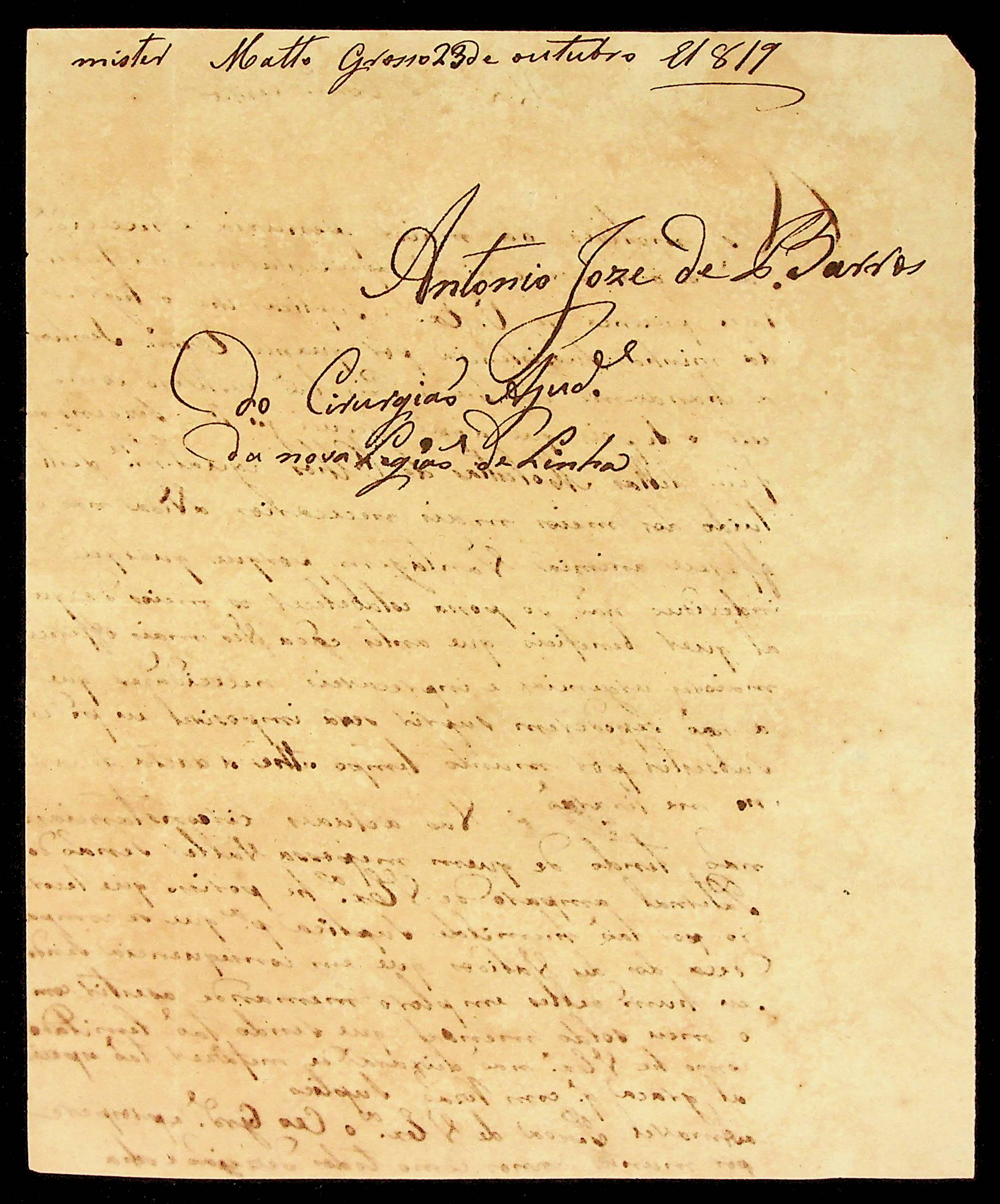 CARTA do Cirurgião Ajudante da Nova Legião de Linha Antônio José de Barros ao [Governador e Capitão-General da Capitania de Mato Grosso Francisco de Paula Maggessi Tavares de Carvalho].