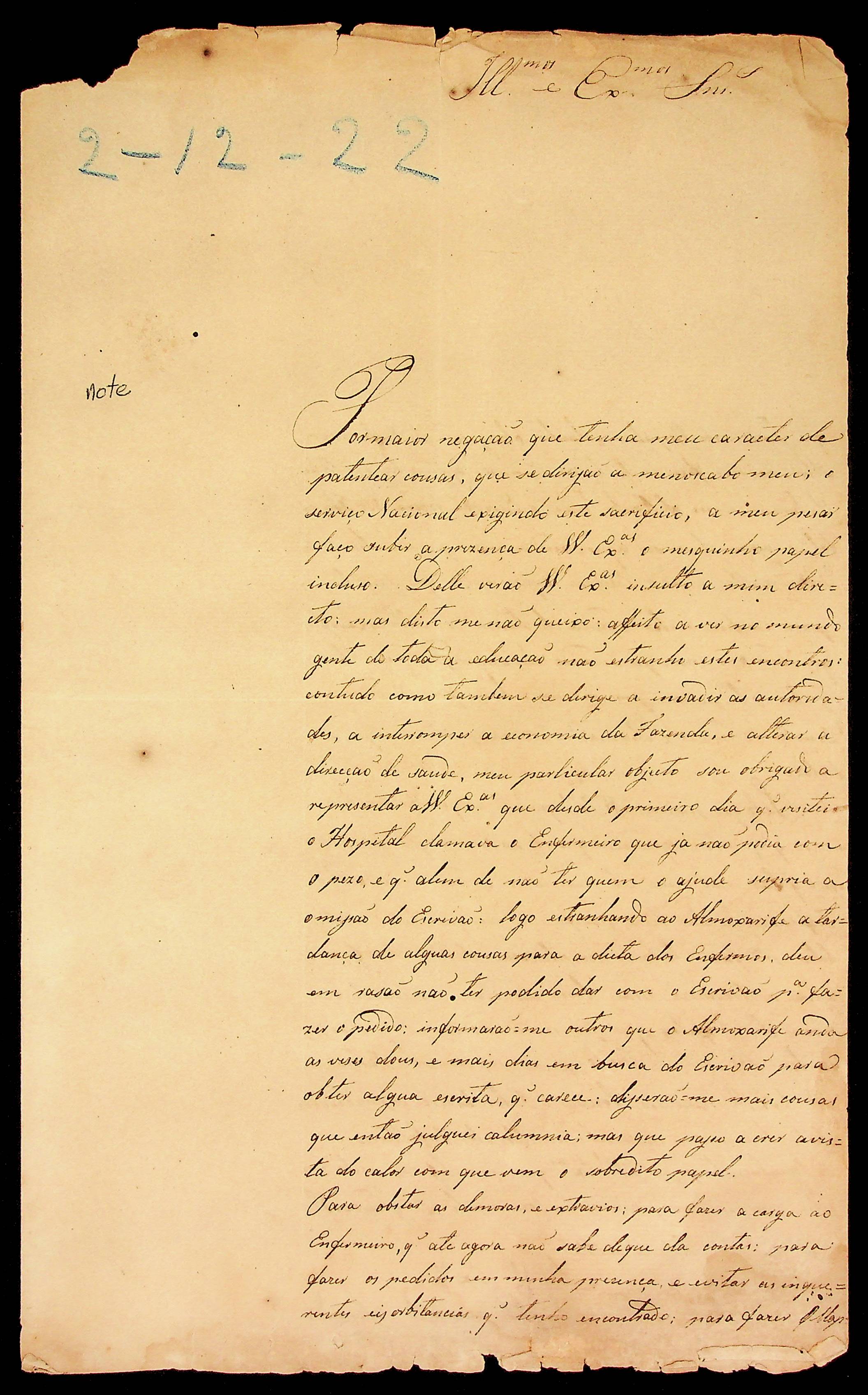 CARTA do [Cirurgião] Antônio Luiz Patrício à Junta Governativa Provisória de Cuiabá.