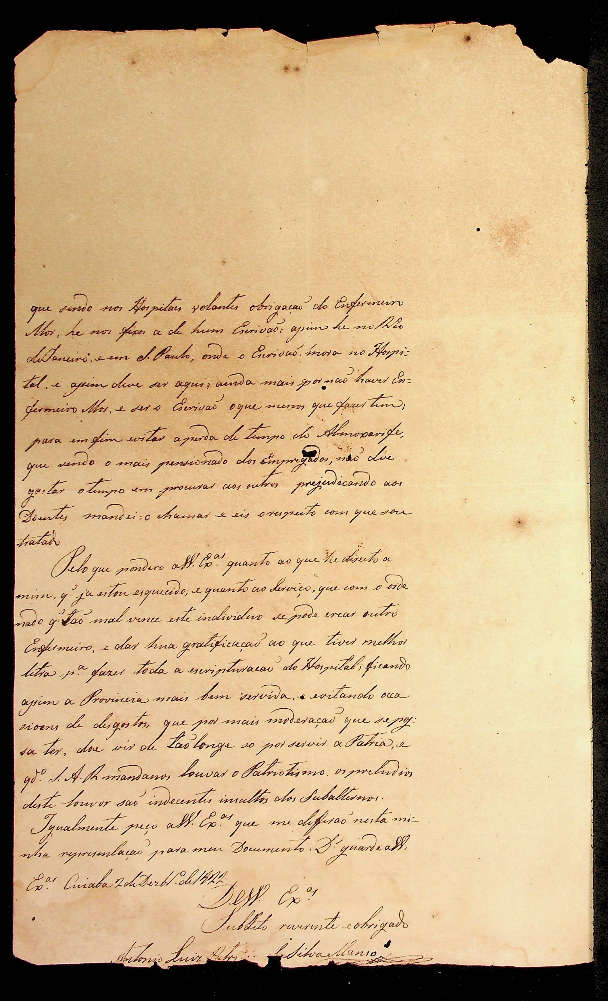 CARTA do [Cirurgião] Antônio Luiz Patrício à Junta Governativa Provisória de Cuiabá.