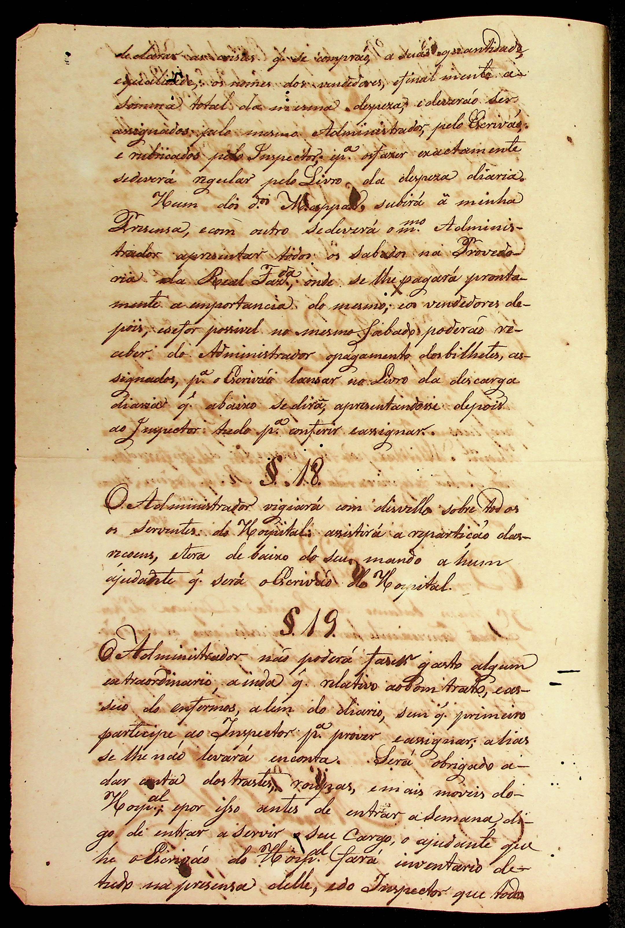 REGULAMENTO (cópia) dos Parágrafos do Plano dado pelo Excelentíssimo Governador Manoel Carlos Abreu deMenezes, em 6 de Outubro de 1804, para ser observado pela Inspeção do Real Hospital Militar desta Capital, os que são relativos à escolha e obrigação de administrador feito pelo comandante Manoel [Rabelo] Leite.