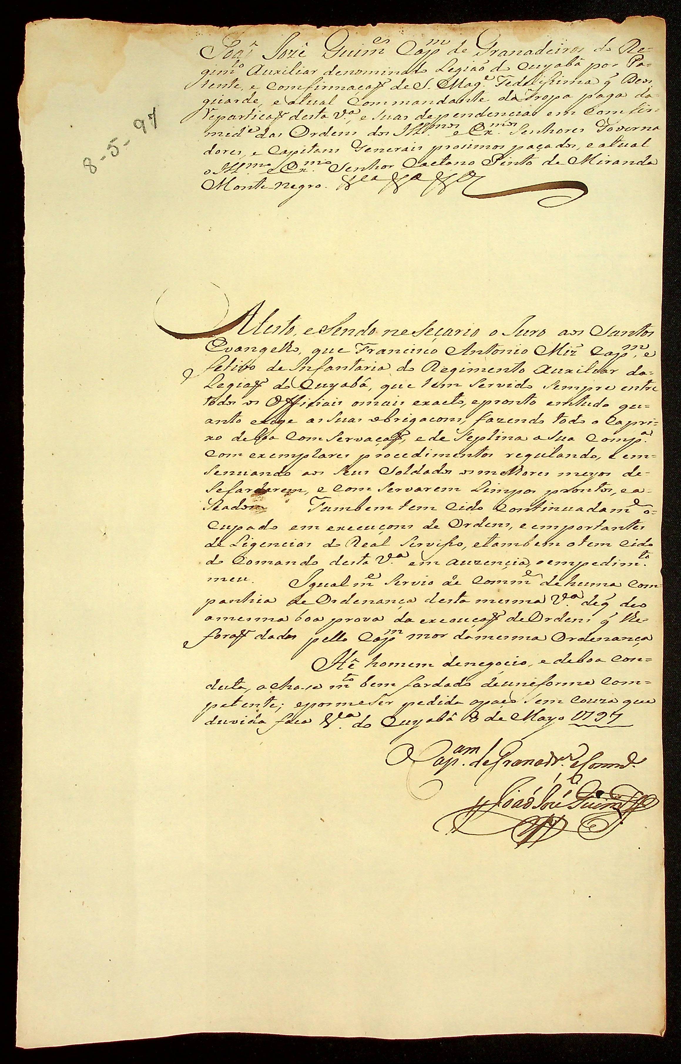 ATESTADO (conjunto) expedido por vários militares sobre o Capitão Francisco Antônio [Martins].