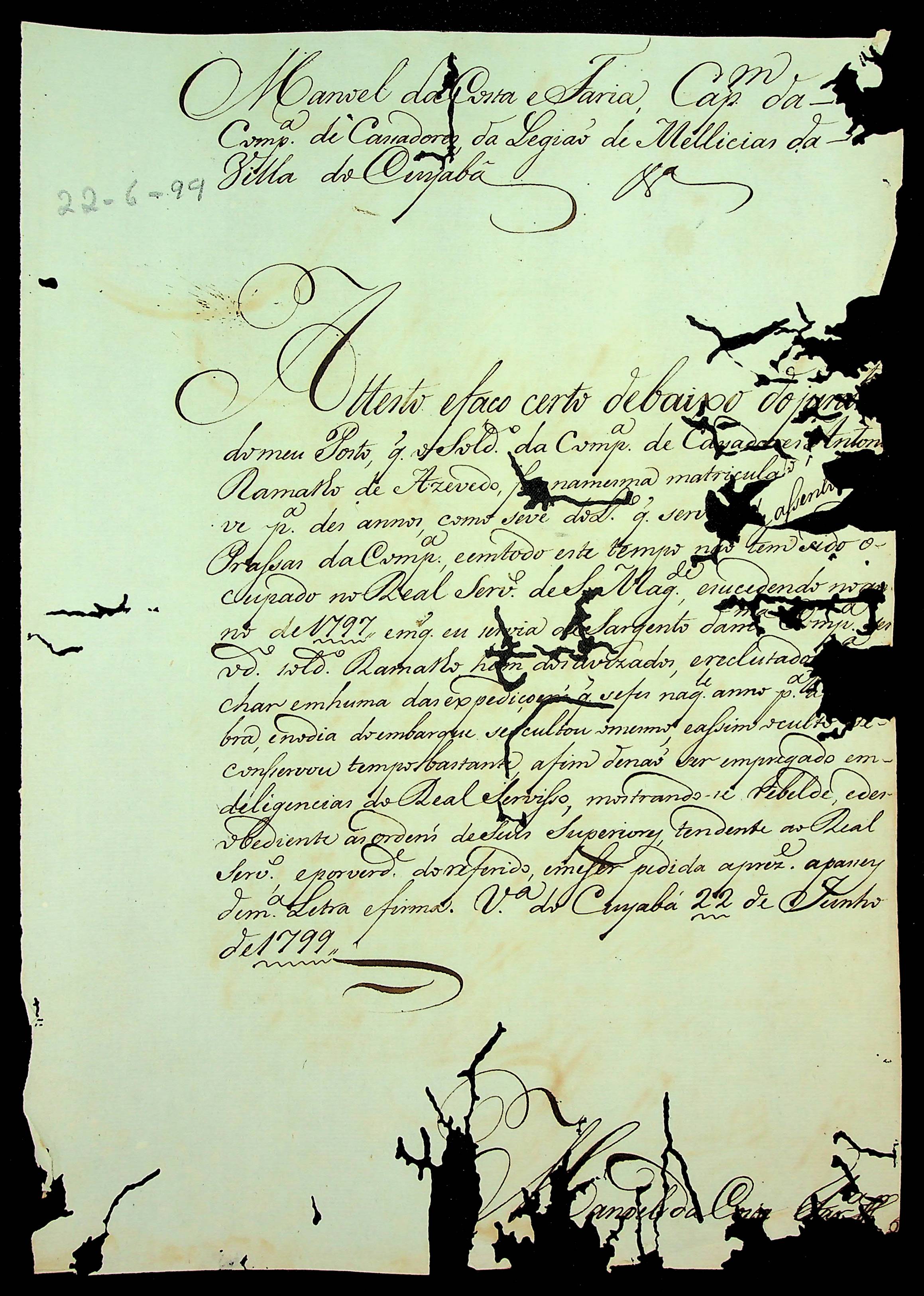 ATESTADO (conjunto) expedido por militares sobre o Soldado Antônio Machado Gouveia Ramalho.