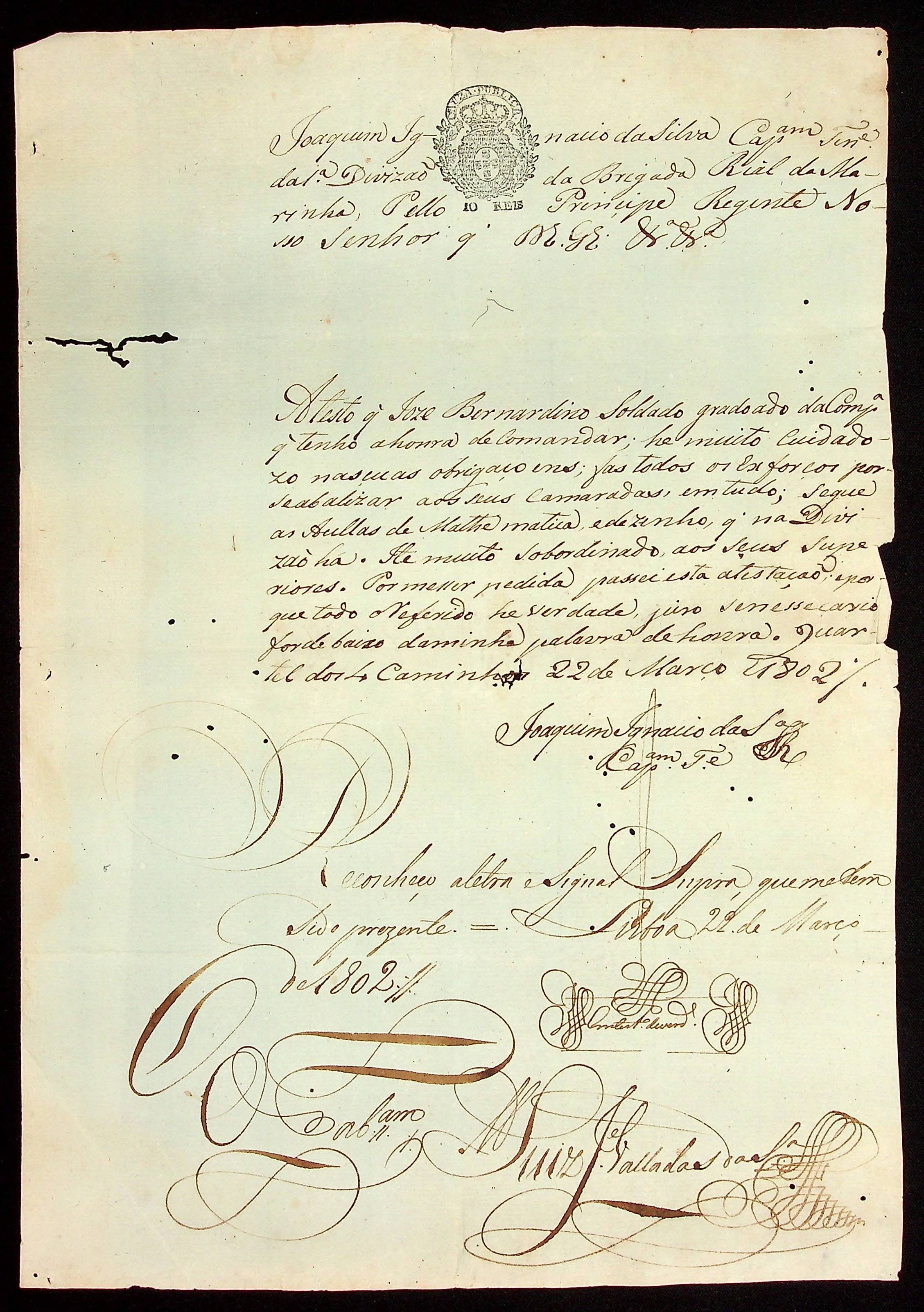 ATESTADO (conjunto) sobre o Soldado Graduado da Companhia José Bernardino.