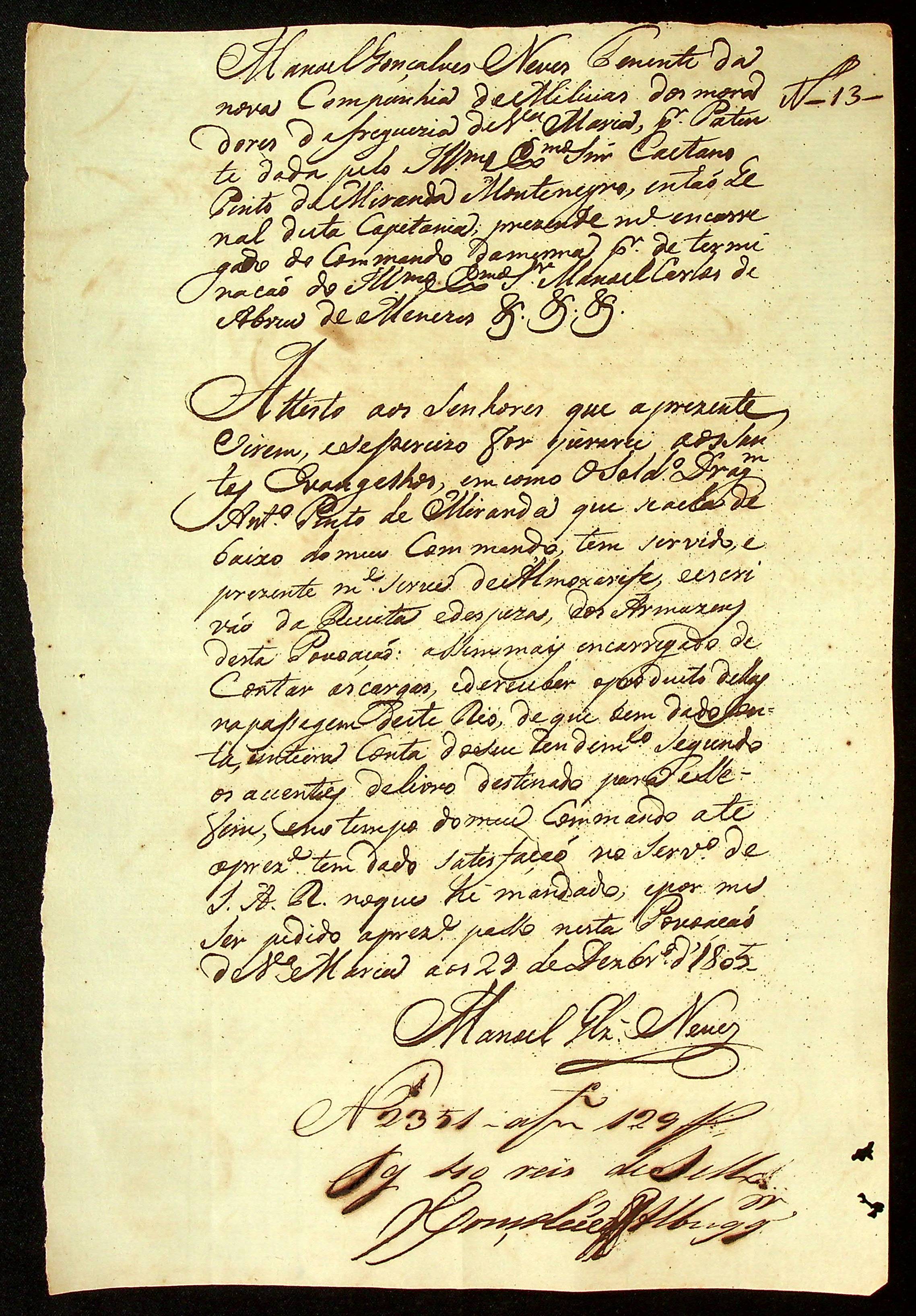 ATESTADO (conjunto) informando sobre o Soldado Dragão Antônio Pinto de Miranda.