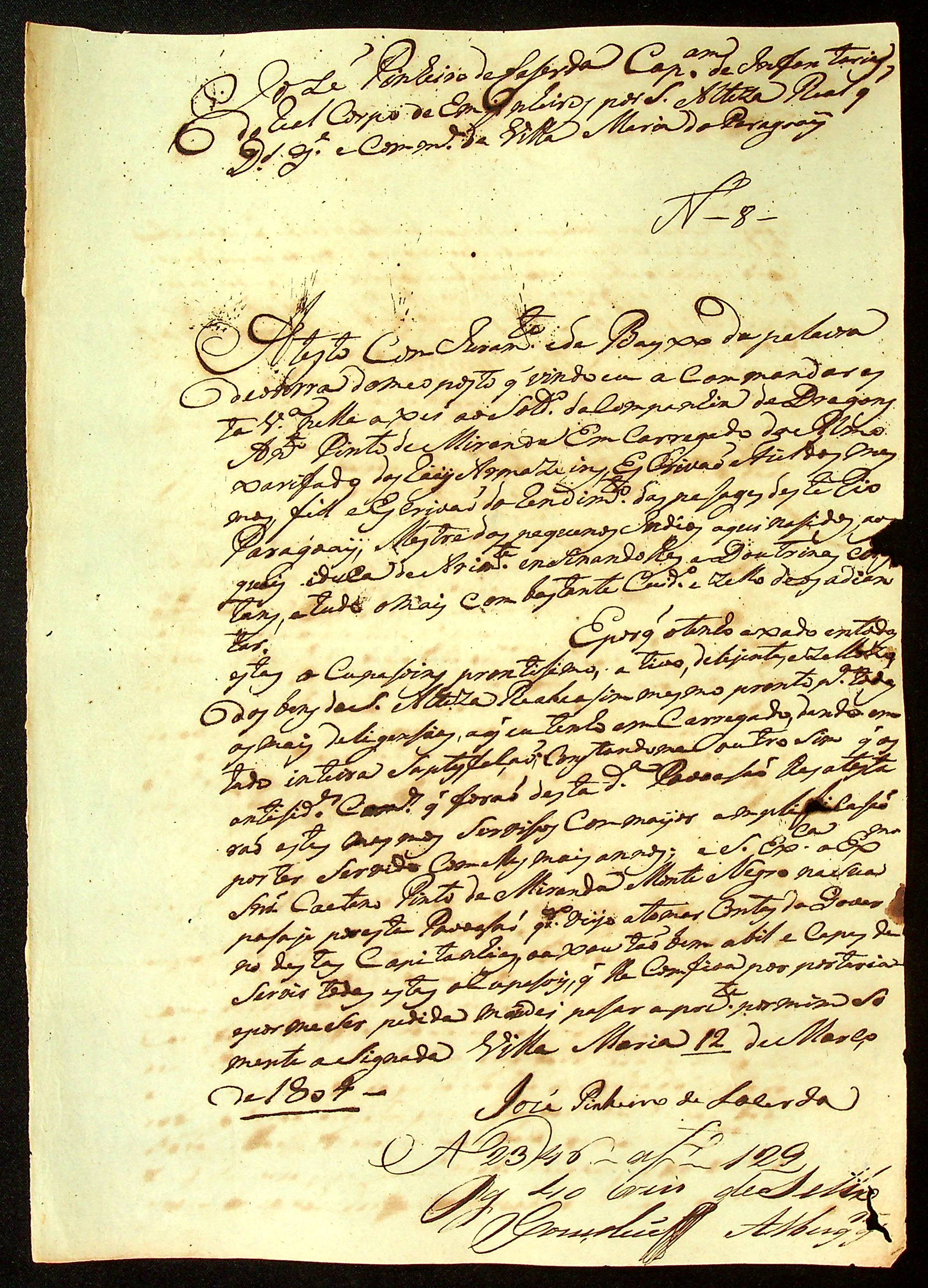 ATESTADO (conjunto) informando sobre o Soldado Dragão Antônio Pinto de Miranda.