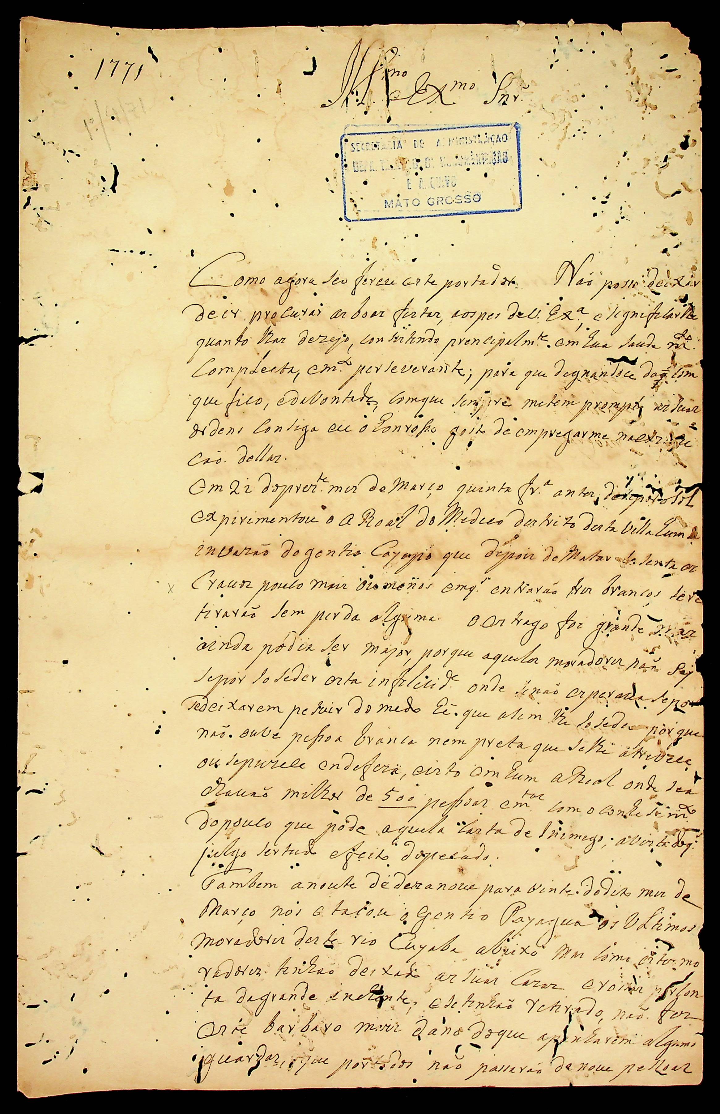 CARTA do [Mestre de Campo] Francisco Lopes de Araújo ao [Governador e Capitão-General da Capitania de Mato Grosso Luiz Pinto de Souza Coutinho].