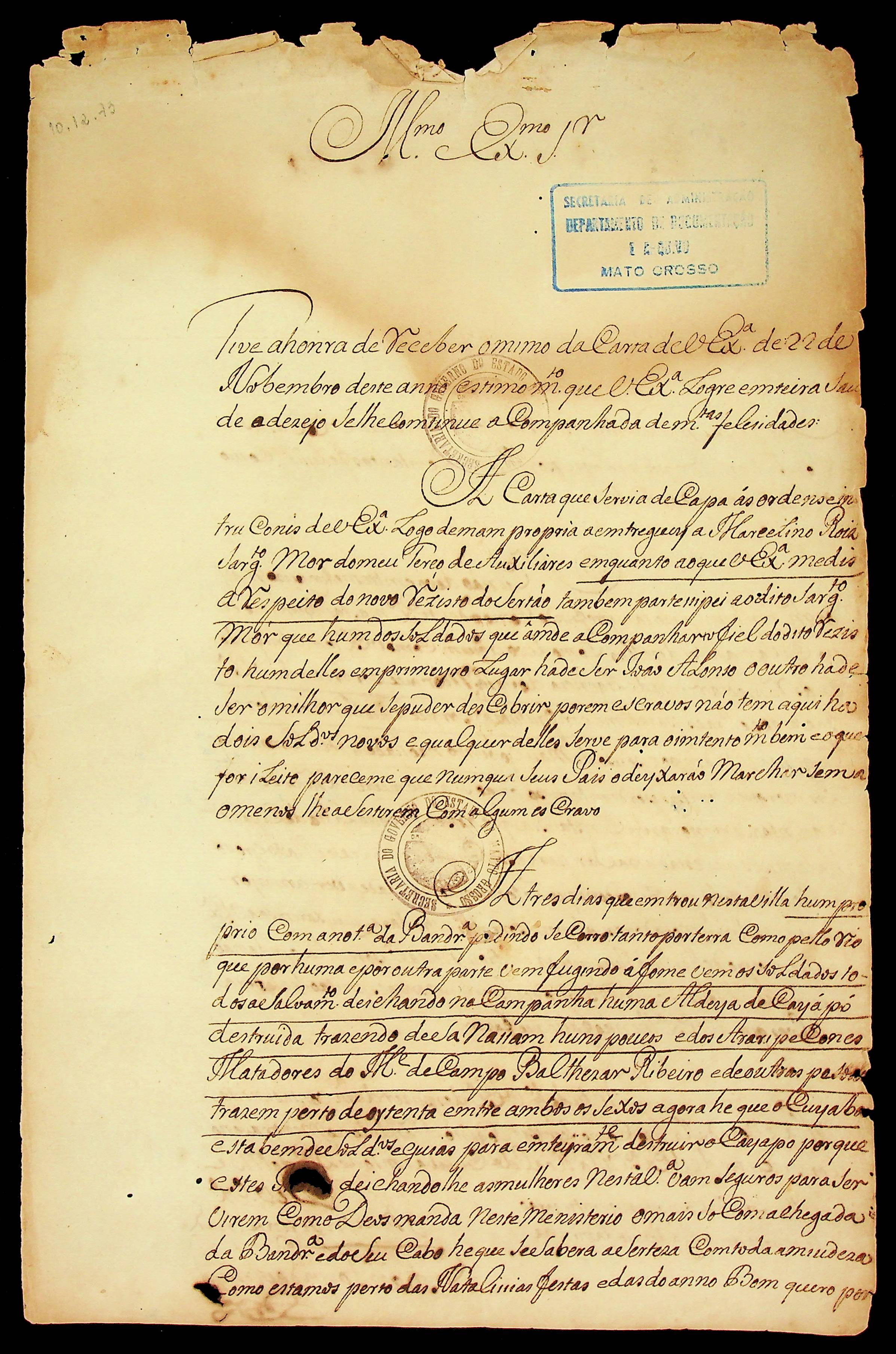 CARTA do [Mestre de Campo dos Auxiliares] Francisco Lopes de Araújo ao [Governador e Capitão-General da Capitania de Mato Grosso Luiz de Albuquerque de Mello Pereira e Cáceres].